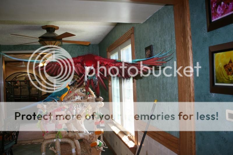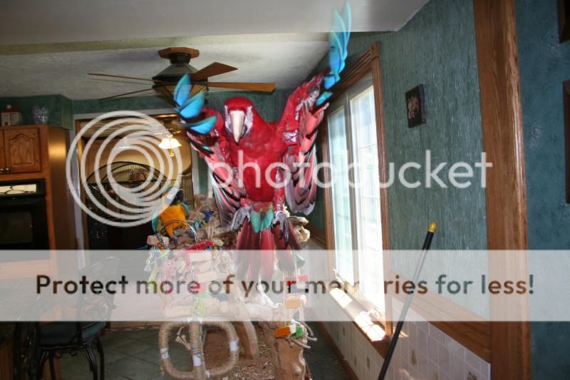 Khaleesi > Green wing macaw. Parrot >Jendai conure Squee> Scaly-breasted lorikeet