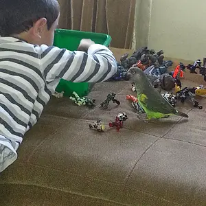Chica Meyer my 3 yr old adopted Meyer doing her owl imitation. She really loves her photo taken!