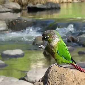 I have a gorgeous, about 10 year old Green Cheek Conure. My sister gave her to me about 6 years ago. She's very fiesty and sometimes even runs after people to bite them, and sticking your finger anywhere near her is out of the question, but she's always nice to me, never bites and even gives me...