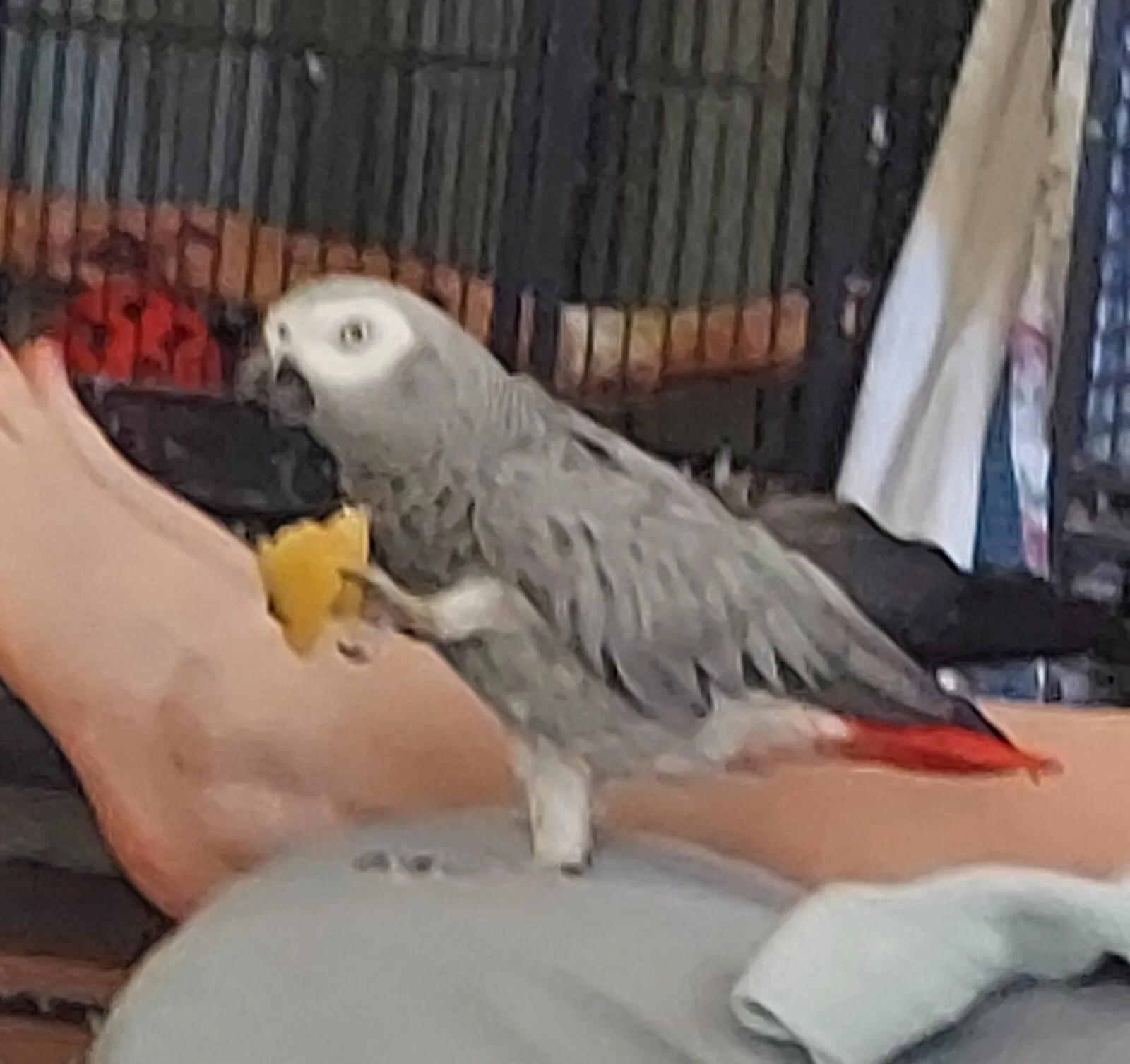 But here is a recent pic of Bella eating a piece of arapa (sort of a South American tortilla) next to my wife's feet.