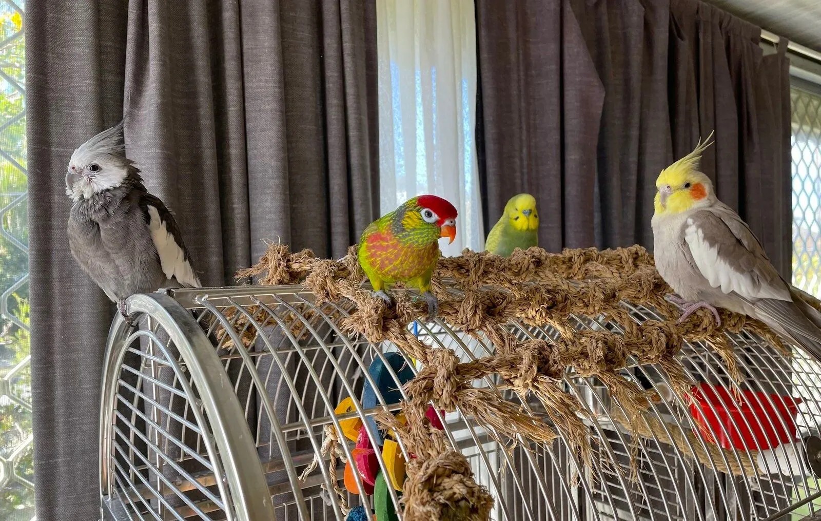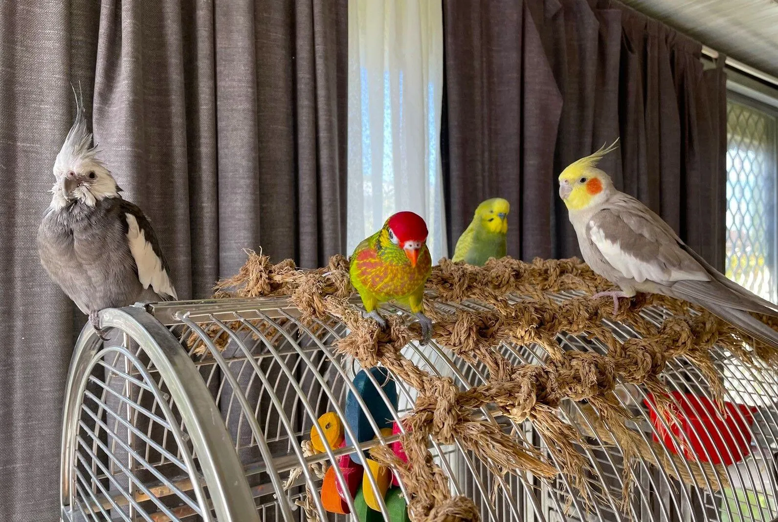 - Fang ({ab}normal grey cockatiel), Valentino (budgie), Jem (cinnamon cockatiel), Lovejoy(varied lorikeet), Peach (princess parrot)