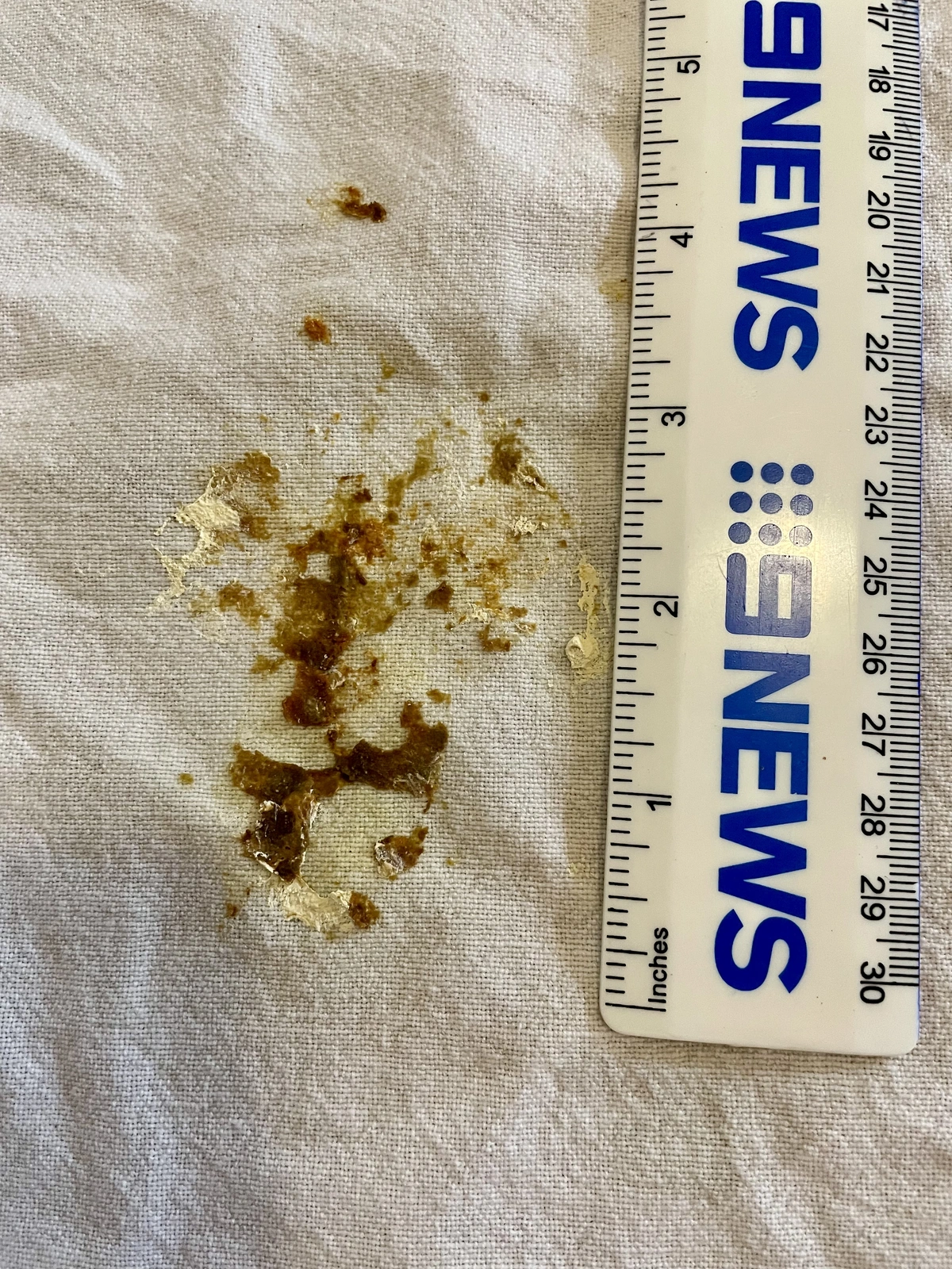 Lovejoy wanted snuggles very early this morning, and I knew he hadn't offloaded his ENORMOUS morning poop yet so I grabbed a tea towel just in case. Looks like I was right to be cautious!!