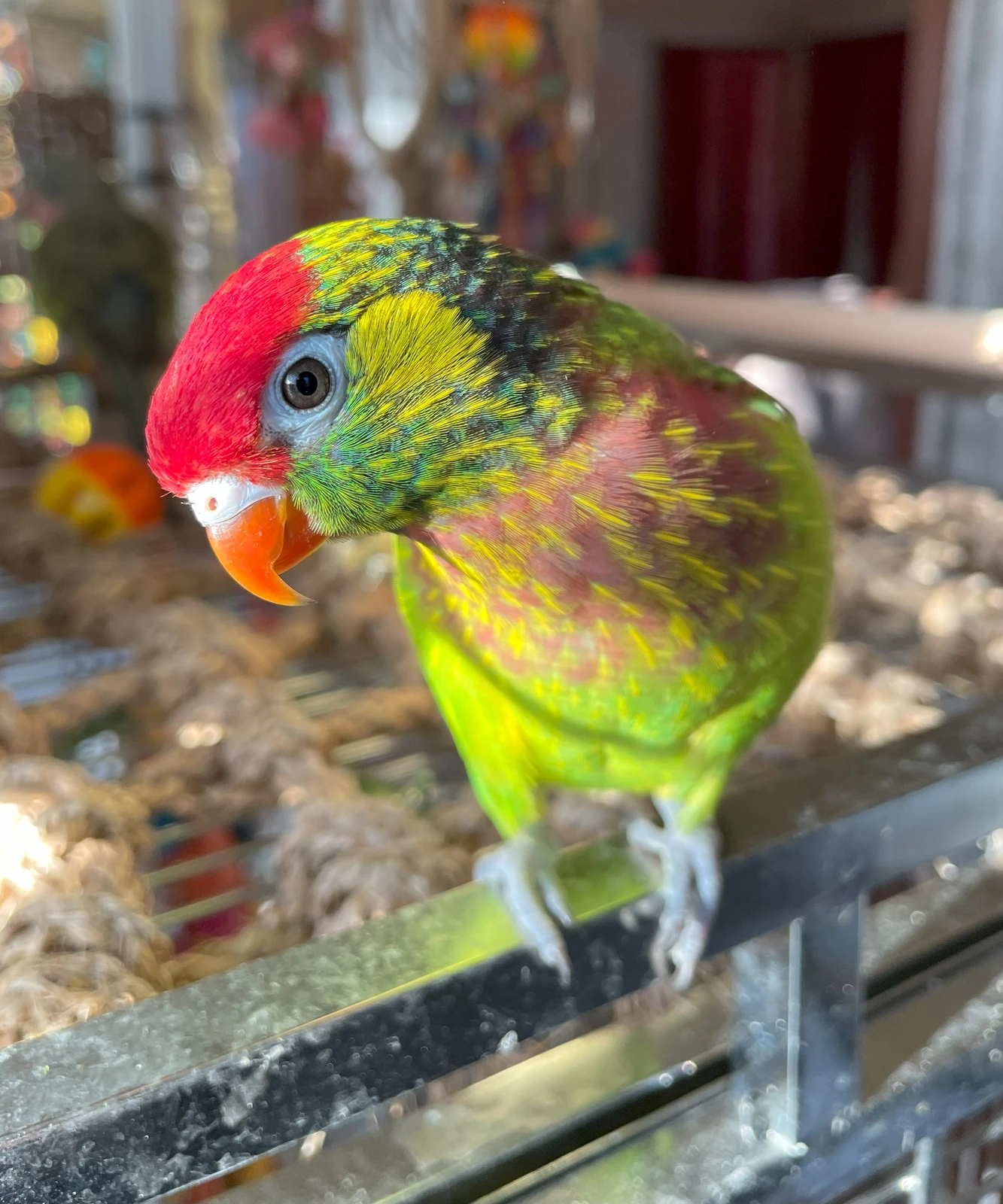 - Fang ({ab}normal grey cockatiel), Valentino (budgie), Jem (cinnamon cockatiel), Lovejoy(varied lorikeet), Peach (princess parrot)