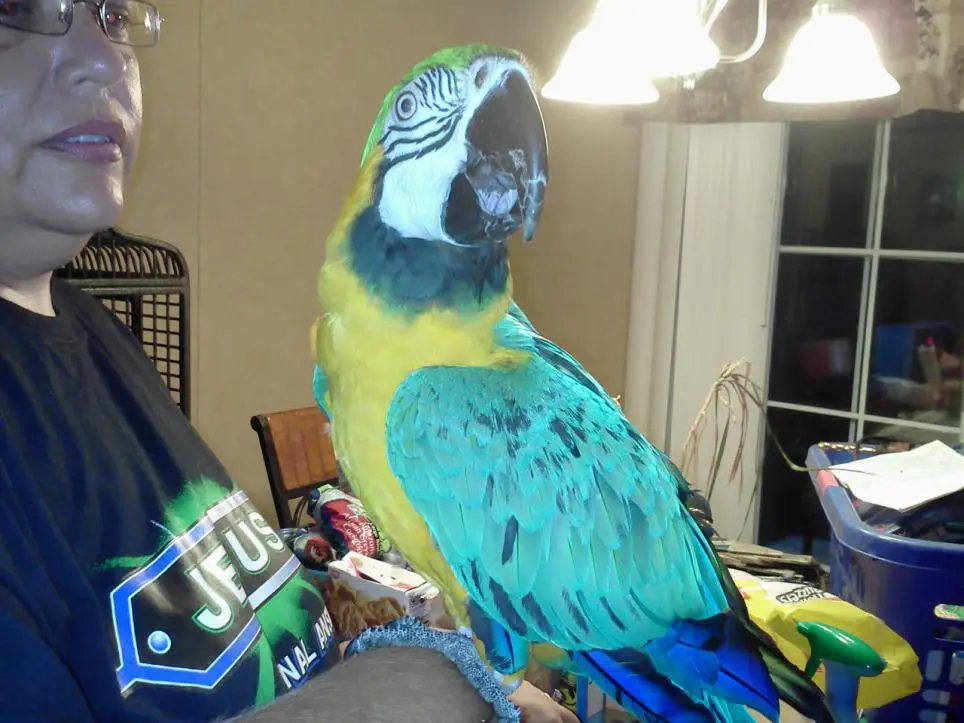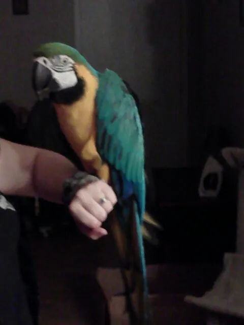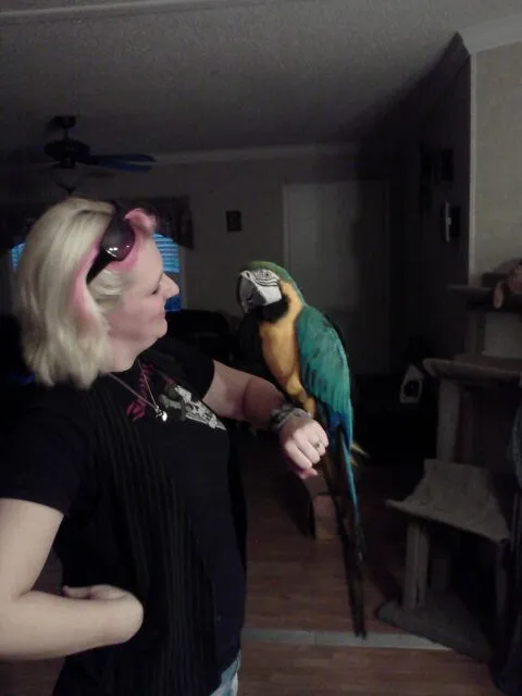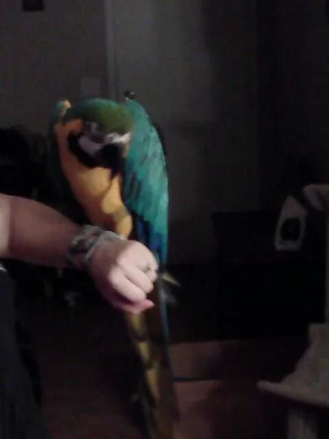 No he is my only one. I have had cockatiels and hand raised baby macaws, greys, and toos at a previous job. My first love was a grey. He loved me and would bite anyone else. was always out on my shoulder when i was at work. someone bought him. I was devastated. begged my family member for money to get him. He stayed sick for a year after she took him home. she would let me go visit him but he would always reject her again after i left so she didnt allow me to see him anymore. =( Edgar is my new love. =) He is amazing.Congrats! Should be fun having him around. Do you have any other birds?
