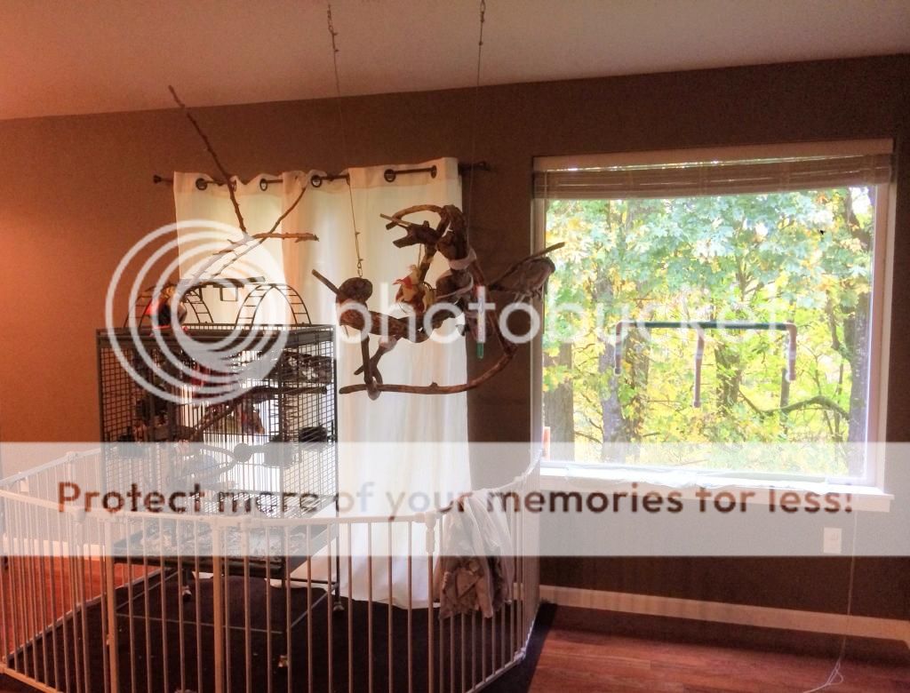 Fireball lives at my mom's house, and my son who is now 14 months old is now walking and is very interested in him. I know that he won't hurt my son, but Fireball doesn't know him so I don't want him to not be watched and be bit because my son gets too excited too quickly or startles Fireball. We've thought about building an outdoor aviary for him with heaters, but we don't want him to feel like he's being kicked out for doing something bad, and hurting himself or something.