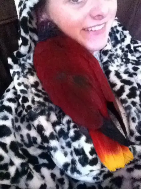 My parrot loves me and will cuddle me all day. As u can see. The problem is that if someone interferes she because very aggressive toward them and will bite their face if she gets a chance.