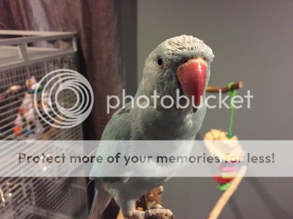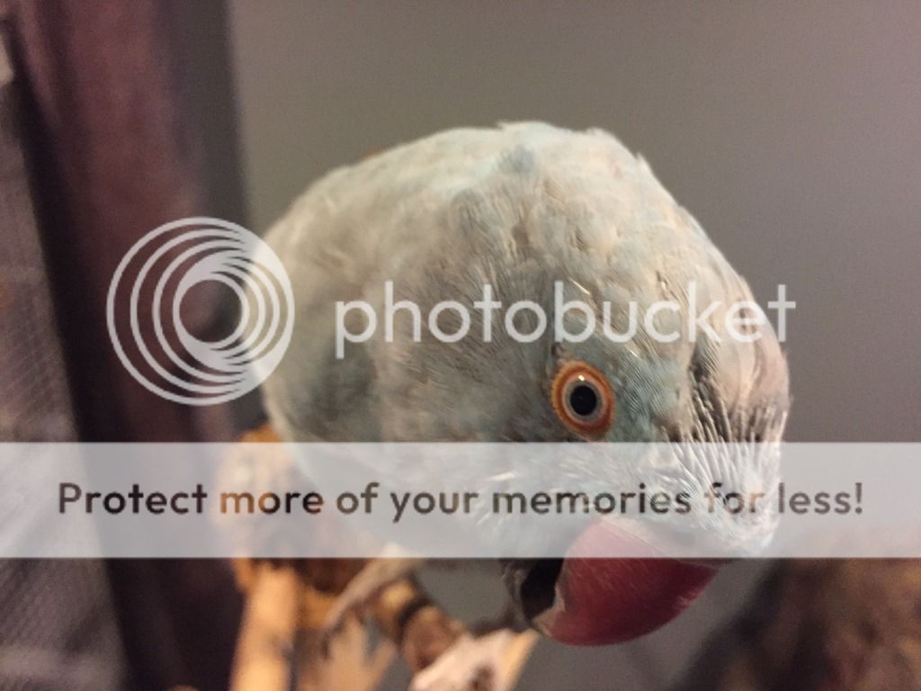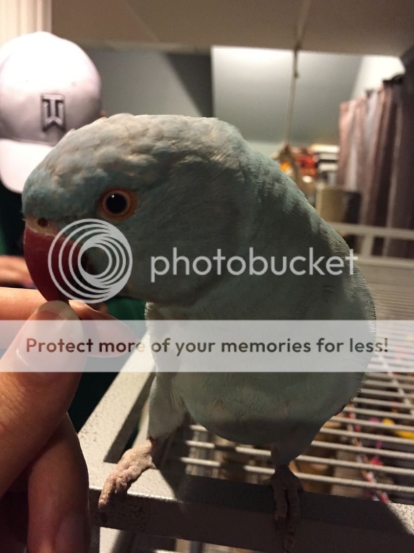 I'm hoping someone more experienced with Ringnecks can tell me that IRN's always go through a heavy first moult, and that it's completely normal to be missing this many head feathers. Or to tell me that it's normal that when they scratch their head, fully developed feathers just plop out in large amounts. His wing moult didn't worry me, but the amount of feathers missing from his head are making me a bit concerned.