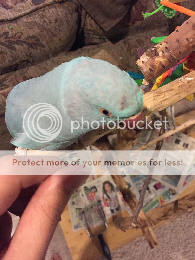 I came home from work today and was ecstatic because my SO cleaned the place, did the laundry, and the bird cages were spotless. I went to go greet Shiko first, because he's the most demanding and chattery when I come home, and I was completely taken aback by Shiko's large patch of missing feathers on his head. It wasn't like that last night when I put him to bed.