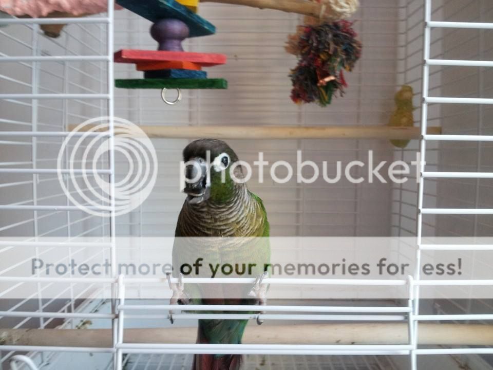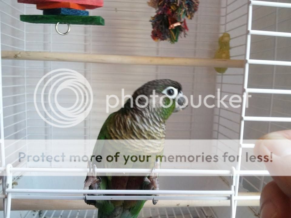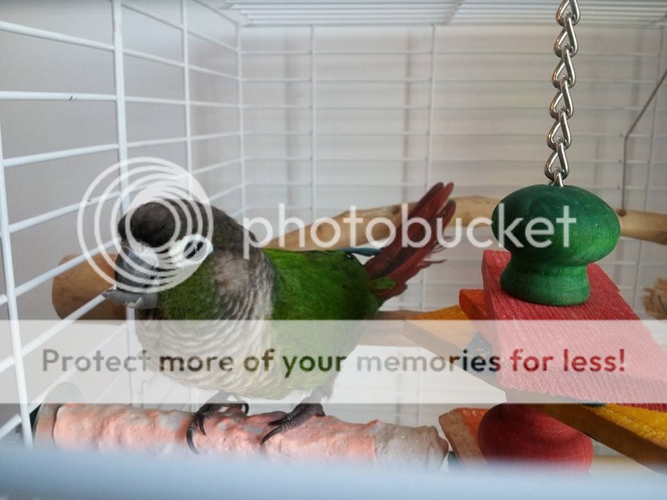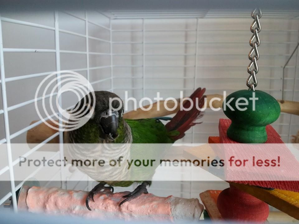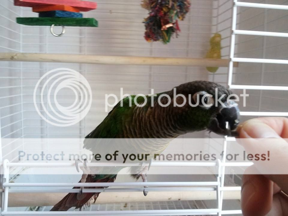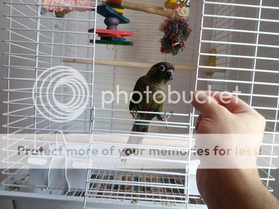 She is used to me, she loves her cage and her toys. She plays with them a lot, she eats really well despite her massive lower beak that goes over the upper beak.