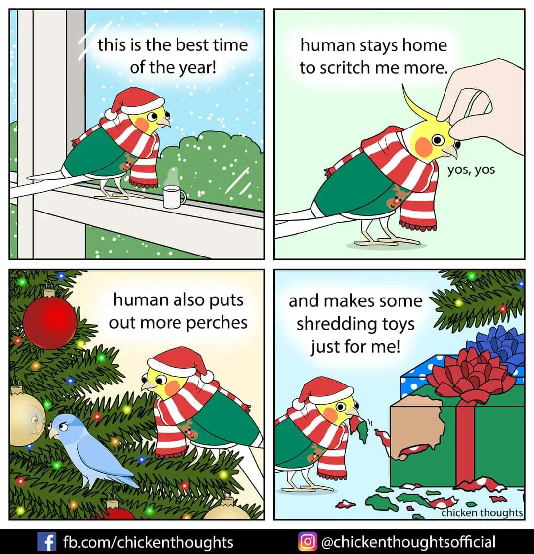 NO! The Rickeyird is getting all those.Santa, I want what I'm not allowed...peanuts, french fries, buttery popcorn, cheddar cheese, and....