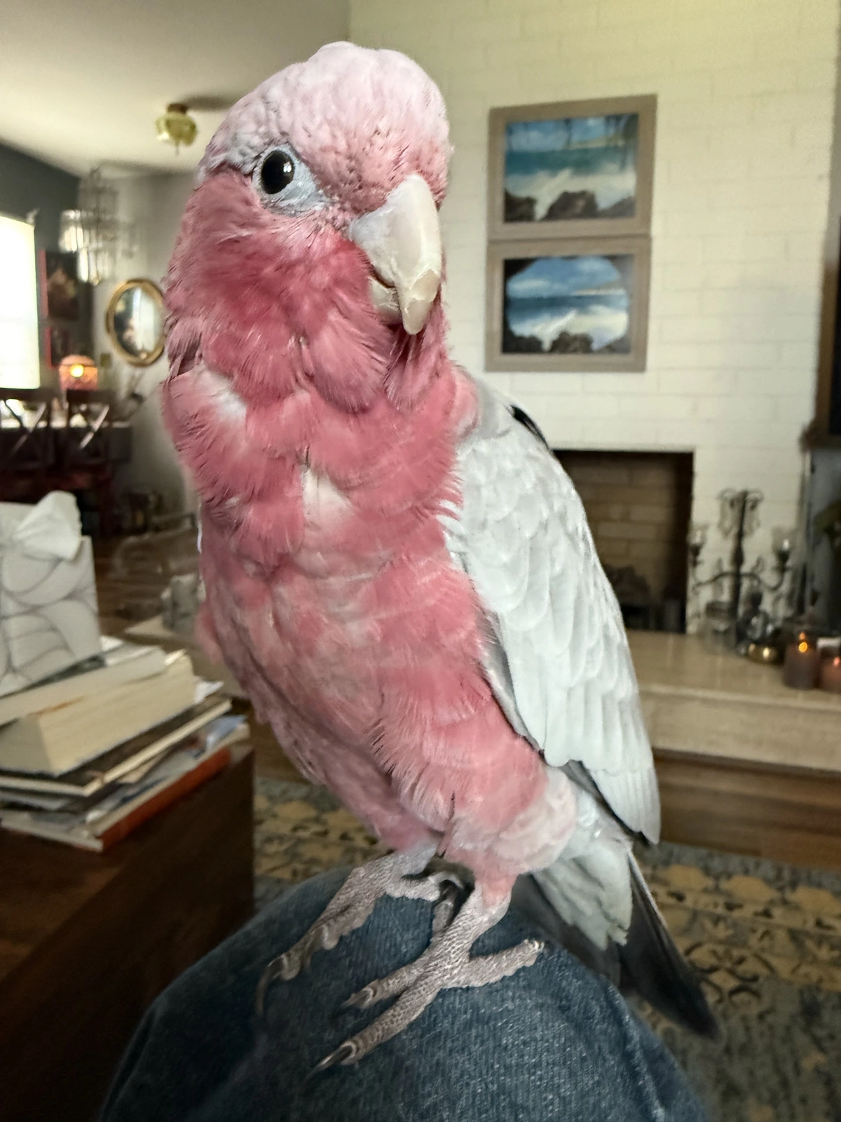 She has very little to no fear of our other pets. Iām glad sheās so comfortable, but we never let them interact, (same protocol we had with Grim). Our Labrador is a registered service dog, but sheās also huge, so better safe than sorry. In terms of people, she has absolutely no qualms about new individuals, as far as I can tell. I read that baby parrots will tolerate a lot even if they donāt want to and then hold resentment for it, so Iām worried about pushing her boundaries, but I also want to make sure sheās socialized. But I will say she doesnāt show any signs of agitation while perching on a stranger or when new people come and talk to her.