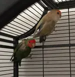 As these are our first Lovies could anyone please tell us what sort they are, is there anyway we can sex them? We have a vets appointment booked for Sunday as the green one has plucked it's back and tummy and in the meantime they're settling into a clean cage with a variety of foods - there was a box of budgie food next to the cage when we collected them!