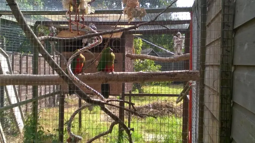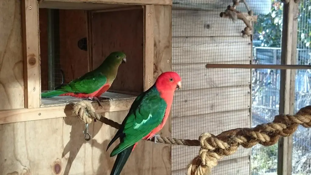 In the aviaries: 2 pairs or Australian King Parrots and a pair of Rock Pebblers