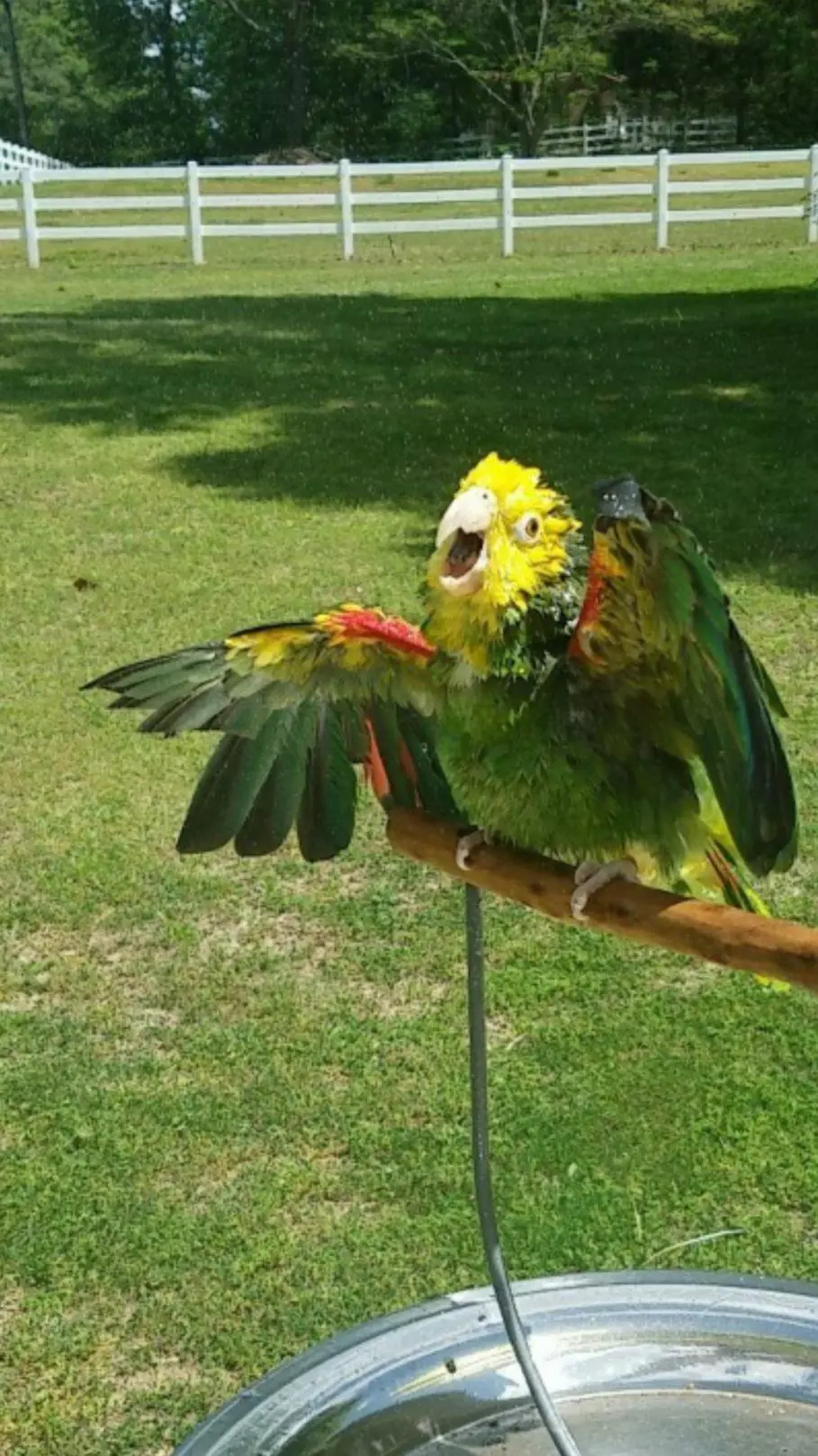 He's a Crimson Rosella, green as hes juvenile, over the next year he'll 'ripen' & go mostly red![]()