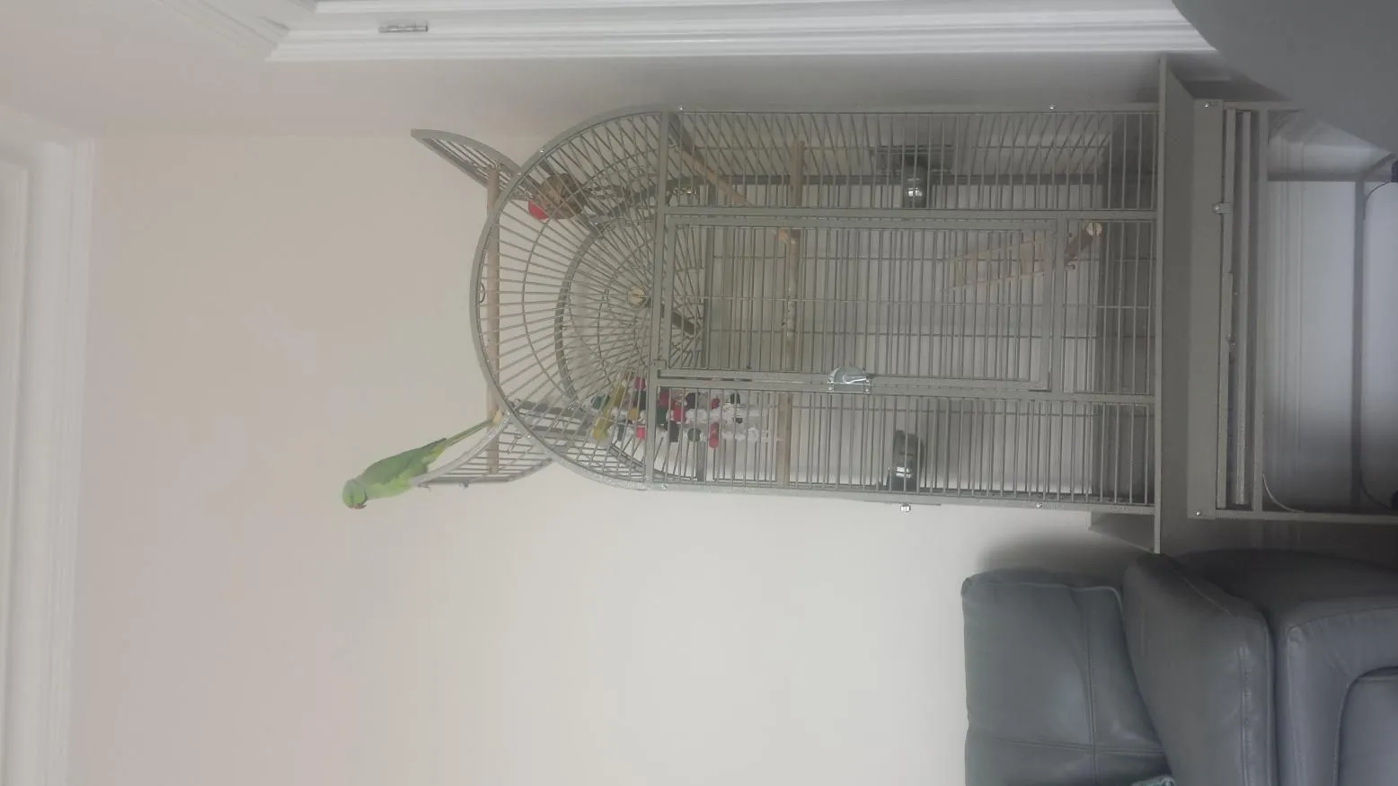 we didnt like him being cooped up so have been opening top of cage and letting him fly around lounge we dont think he has done this before as he was very clumsy at firat flying into things but getting loads better and no more accidents!!