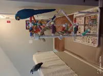 If you look at one of the photos, that macaw (and I assume the grey) get to hang outside on the terrace!