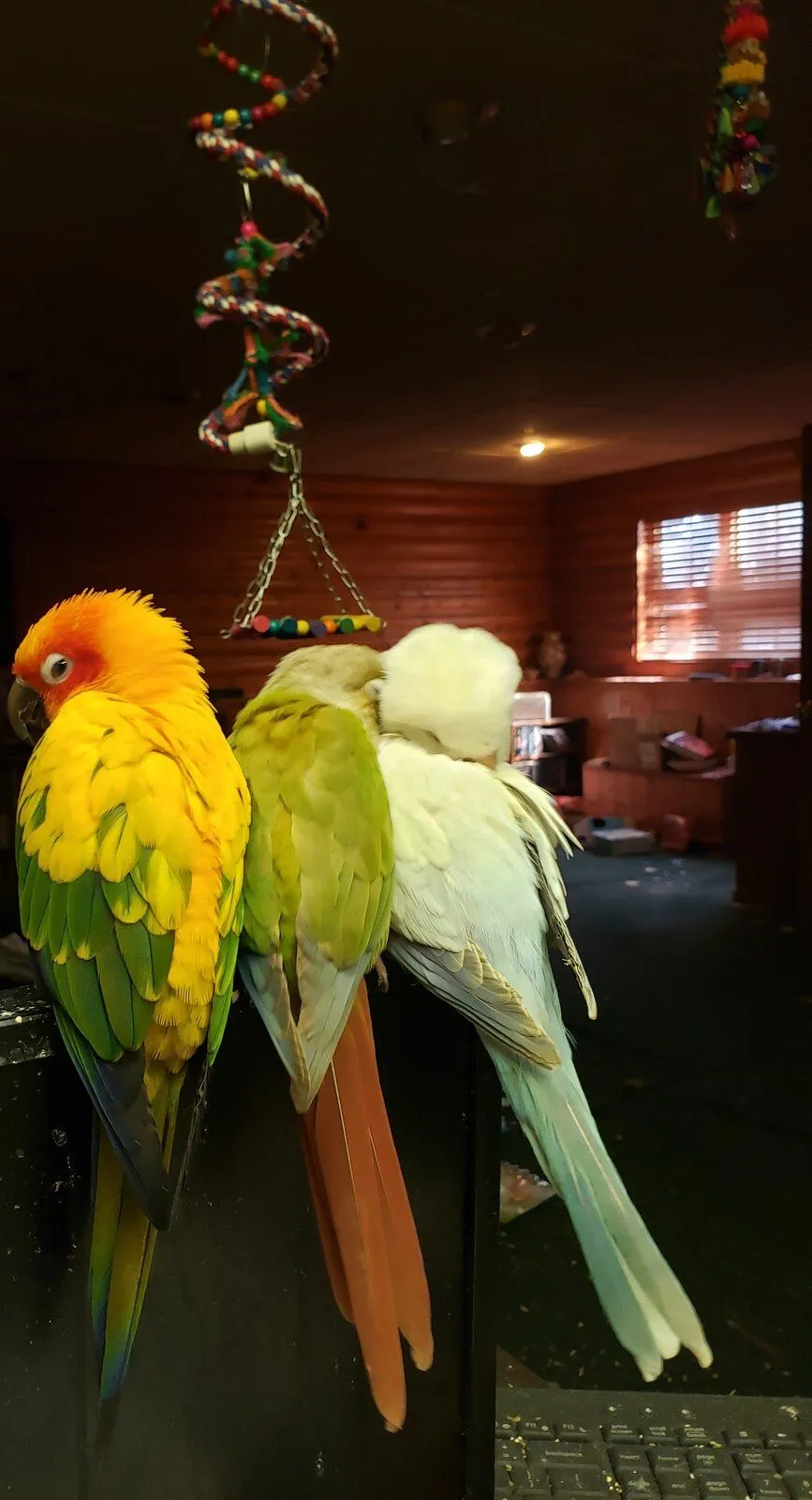 Jax eventually moved into Phoe's cage full-time, and he sleeps right next to the spot where Phoe slept. He seems to have worked through most of his grief, and I'm so glad.