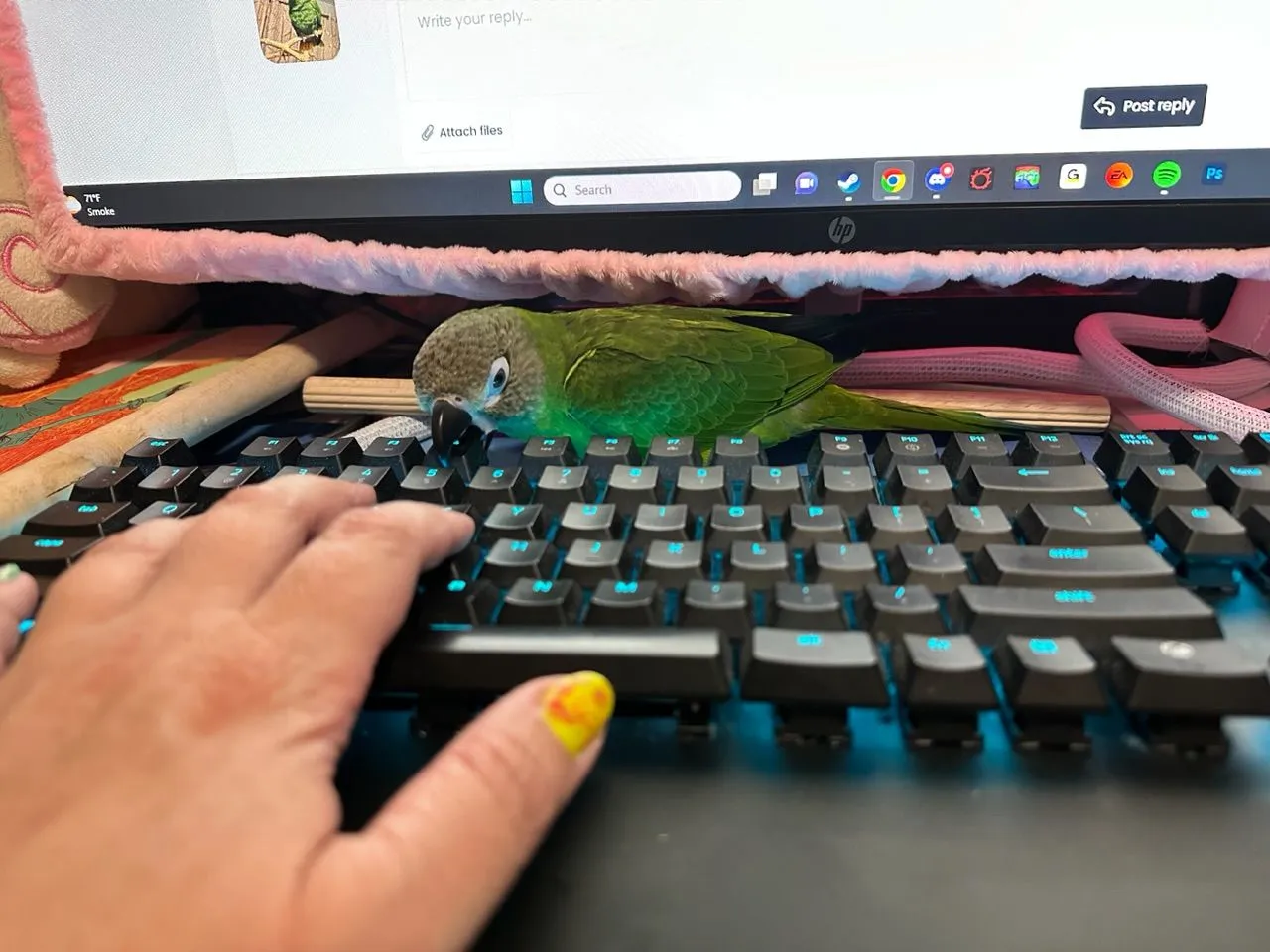 Little man is NOT happy that Kirby was out for nearly 4 hours and spent most of it chirping at him (I like to think he was gloating, lol). He has gotten really comfortable with us, which means he has no qualms about screeching his little butt off if I leave the room, especially if I commit heresy like forgetting to swap birds!