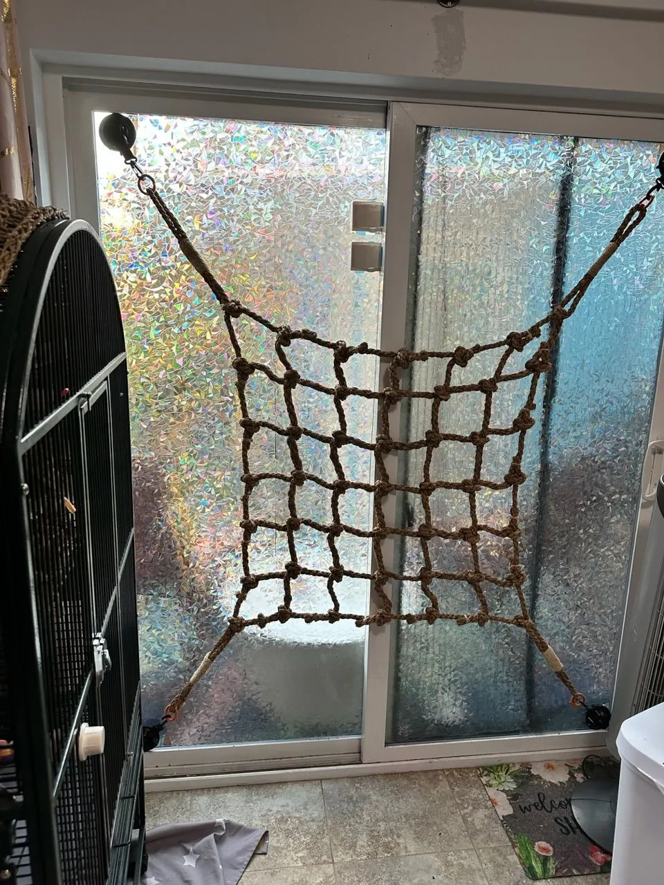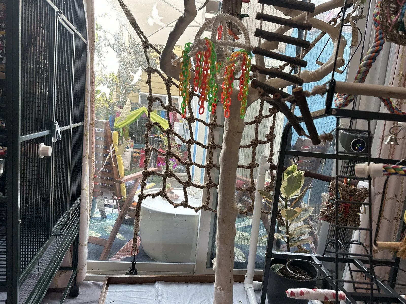 Don't those cut out birds on the glass freak them out a bit? Like flying predators? I think that fear is hard-wired into their brains. Maybe that's why he gets startled? Why not put up cut out elephants or some other less bird- threatening critters? People cut-outs perhaps?View attachment 53706