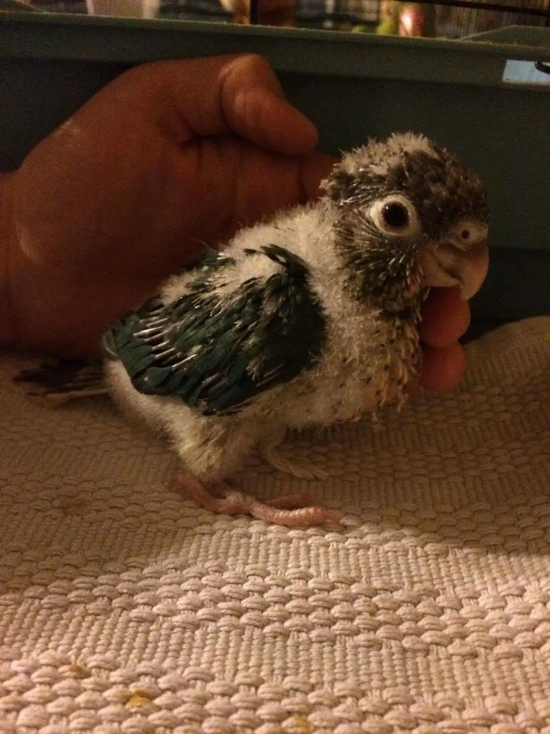 - --PUMPKIN - male YS GCC. Hatched Halloween Day 2014. Came home Jan. 4, 2015. Started talking in July '15!