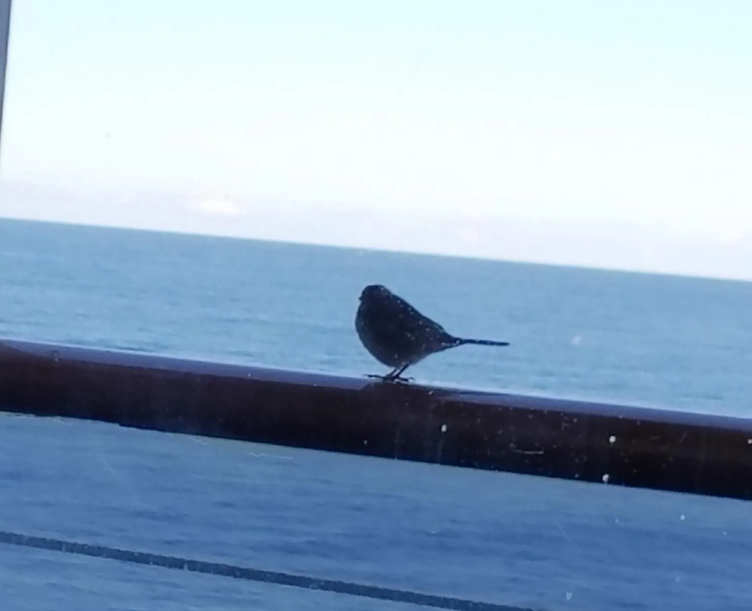 And even at sea, we had to take care of the birds!! We found a couple birds must have been hanging out on the ship when we left port, so we had a little one with us at sea. So, tho I'm sure crew would not have approved, we were feeding this little guy. Got a few photos of him hanging out on our balcony!