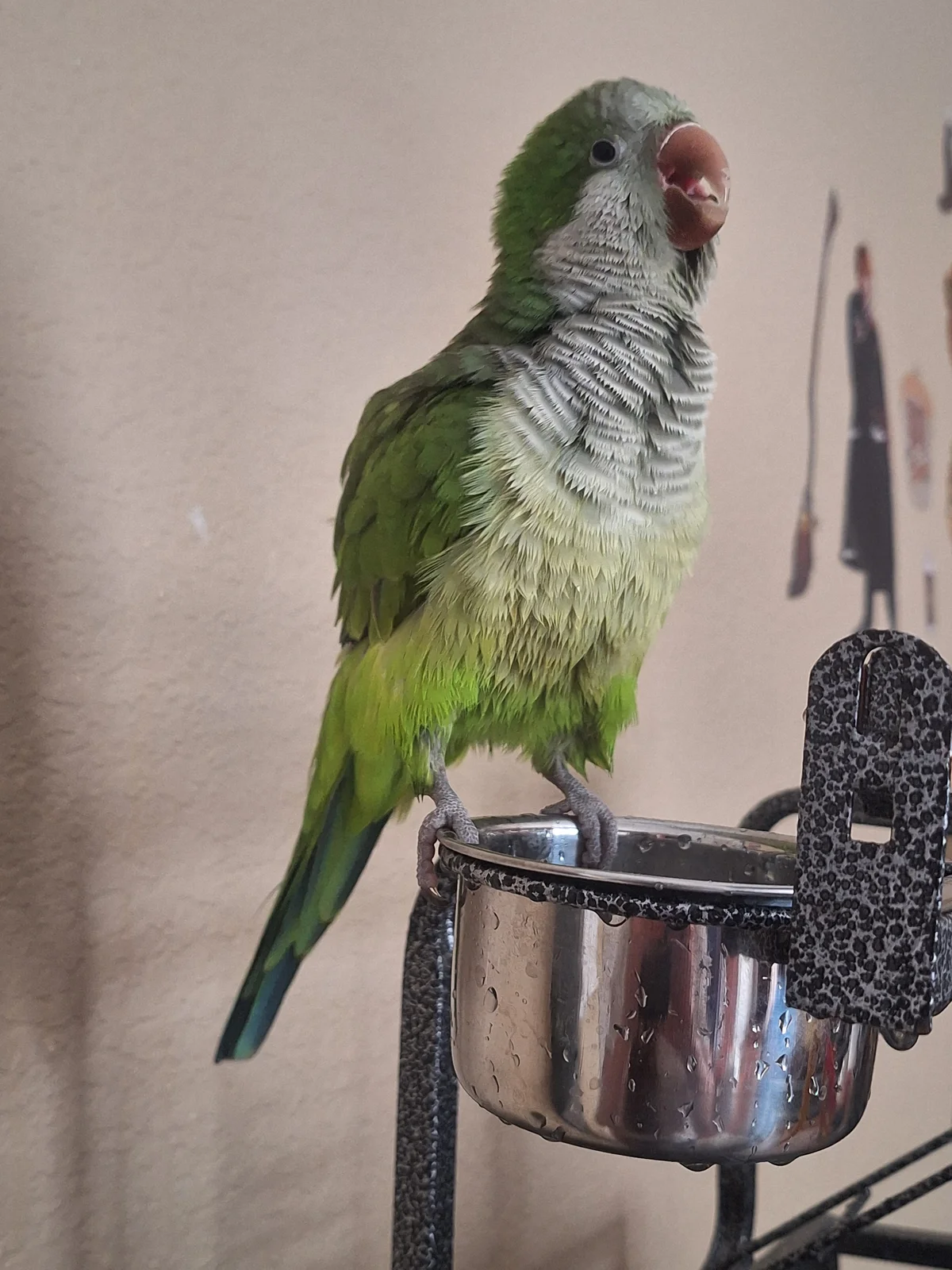 What a stunning photo of your beautiful Guava, he looks so pleased with himself! Have you noticed our March Photo of the Month contest? This pic would make a great entry - hint hintGuava learnt to bathe a couple weeks ago. He likes waterbowlsView attachment 84347He is a wet chicken right now.