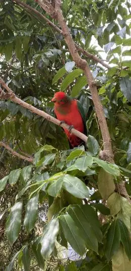 There was a female rainbow lorikeet, and I kept seeing different people try and feed her fruit but the bird only shredded them up. She was protecting her babies in the nest, but they didn't know that she was actually upset about them being there. I was the only person who gave her the space, and in return she later flew over to me and started saying "hello" and climbed onto my hand!! That was so cool!