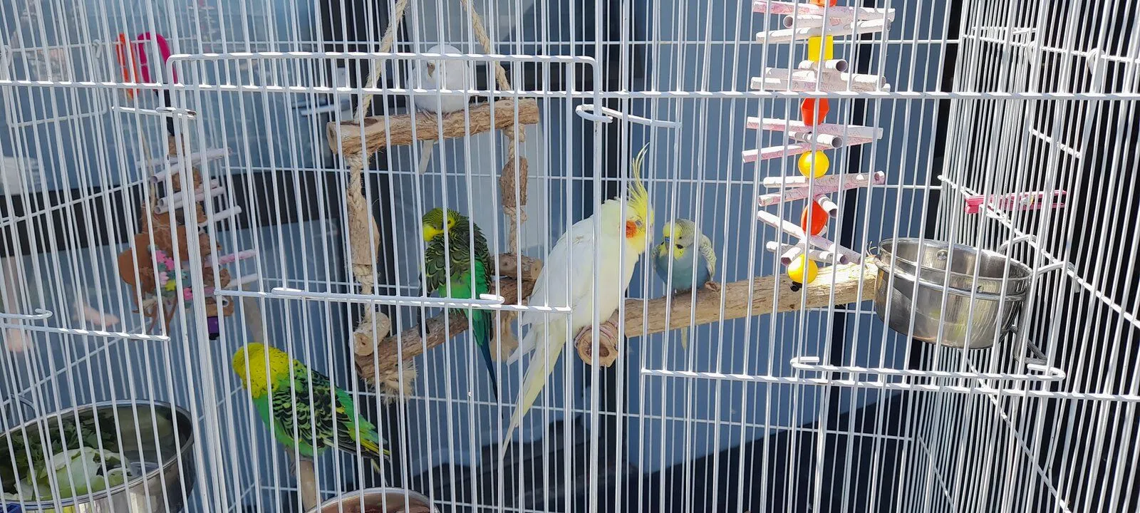 Sunny is struggling with health and old age a bit(and lost her ability to fly over the past or so), so I've moved her to a smaller cage, but still occasionally put her with her buddies when she's lonely(with supervision of course)