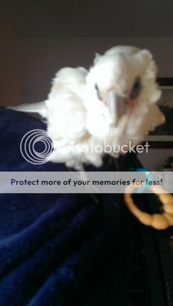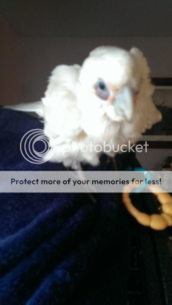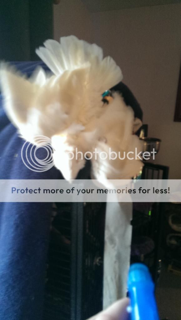 I know she isn't a conure but for anyone who remembers Ivory from other posts she is doing so much better since we got her months ago now...feels like she's been here years. She no longer twists the feathers under her wings and it is nice and soft instead of knotted. She has decided fresh foods aren't evil. And that we are also allowed to leave without her thinking we are never coming back. Also, independent time on the cage isn't such a bad thing anymore and occasionally we can leave the room now without her following us in a panic.