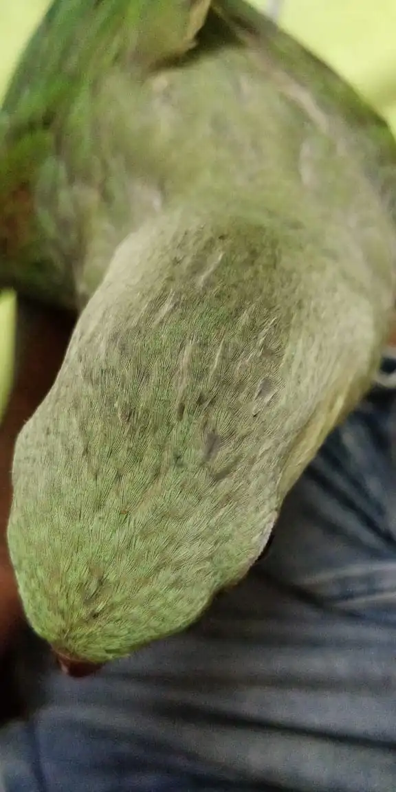 I have a 3 month old baby Alexandrine - Coco. I recently noticed the feather on his head seems to have some black shades and its prominent. I have attached an image too. We are under extremely strict lockdown due to Corona.