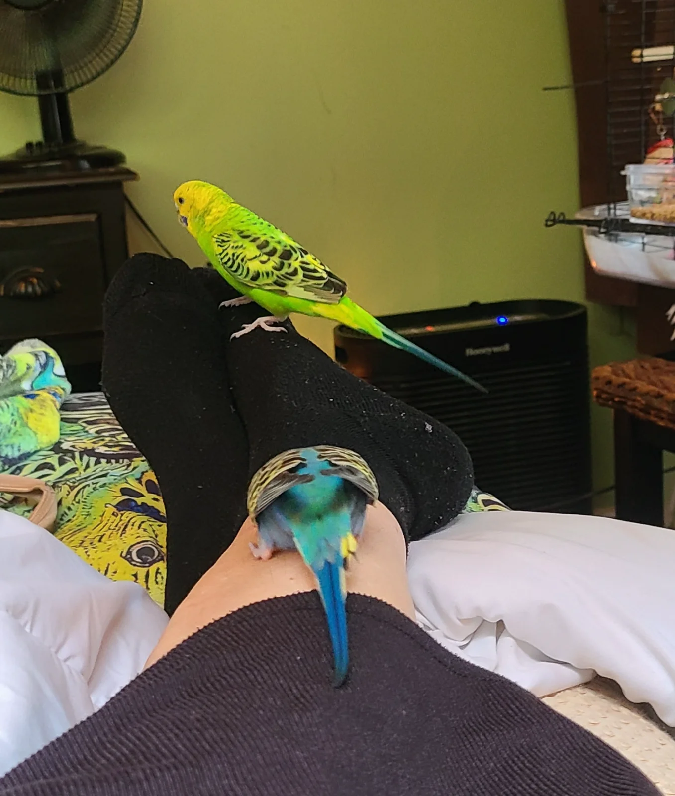 I talked to the vet. He did an x-ray and exam told me that Cora doesn't have a fracture. He said she has a mass in that side of her abdominal cavity that's displacing her organs and is probably putting pressure on the vessels and nerves in her leg. There's nothing that can be done other than to give meloxicam once a day for pain and inflammation and keep her in safe, low stress environment that minimizes climbing. I've set up a bin for her with wide flat perches and no bars to climb while she hopefully recovers enough to go into a regular cage with Joey. Personally, I think she sprained or strained something but that wouldn't show on an xray and that's contributing to her lameness. He can't explain w