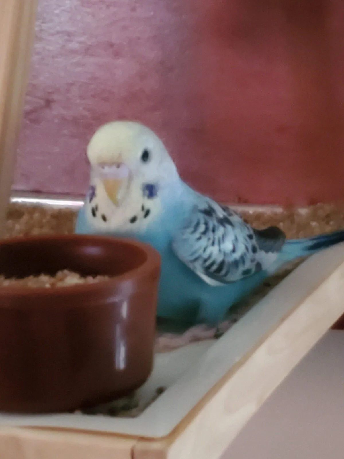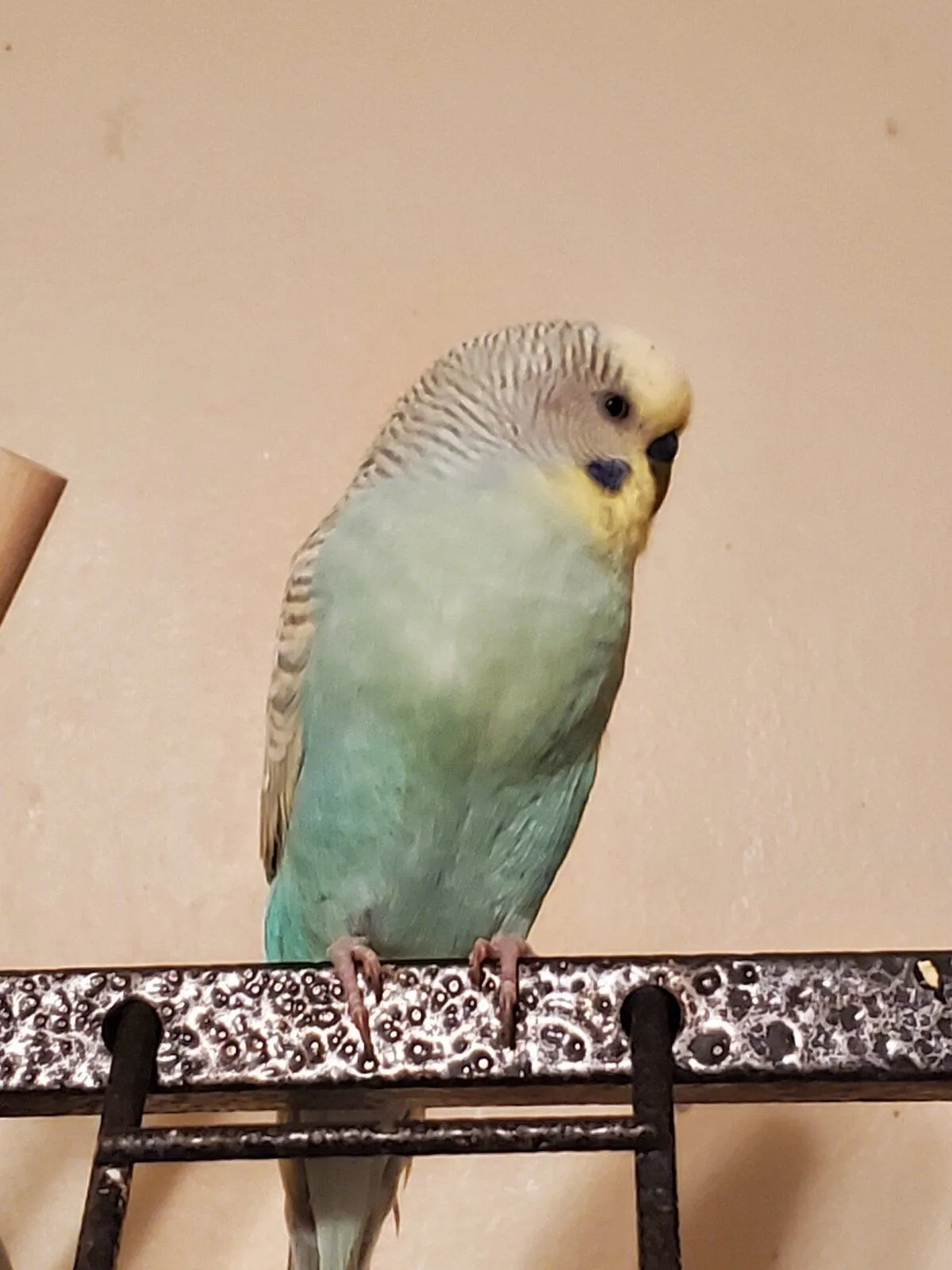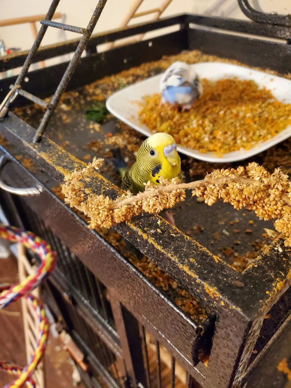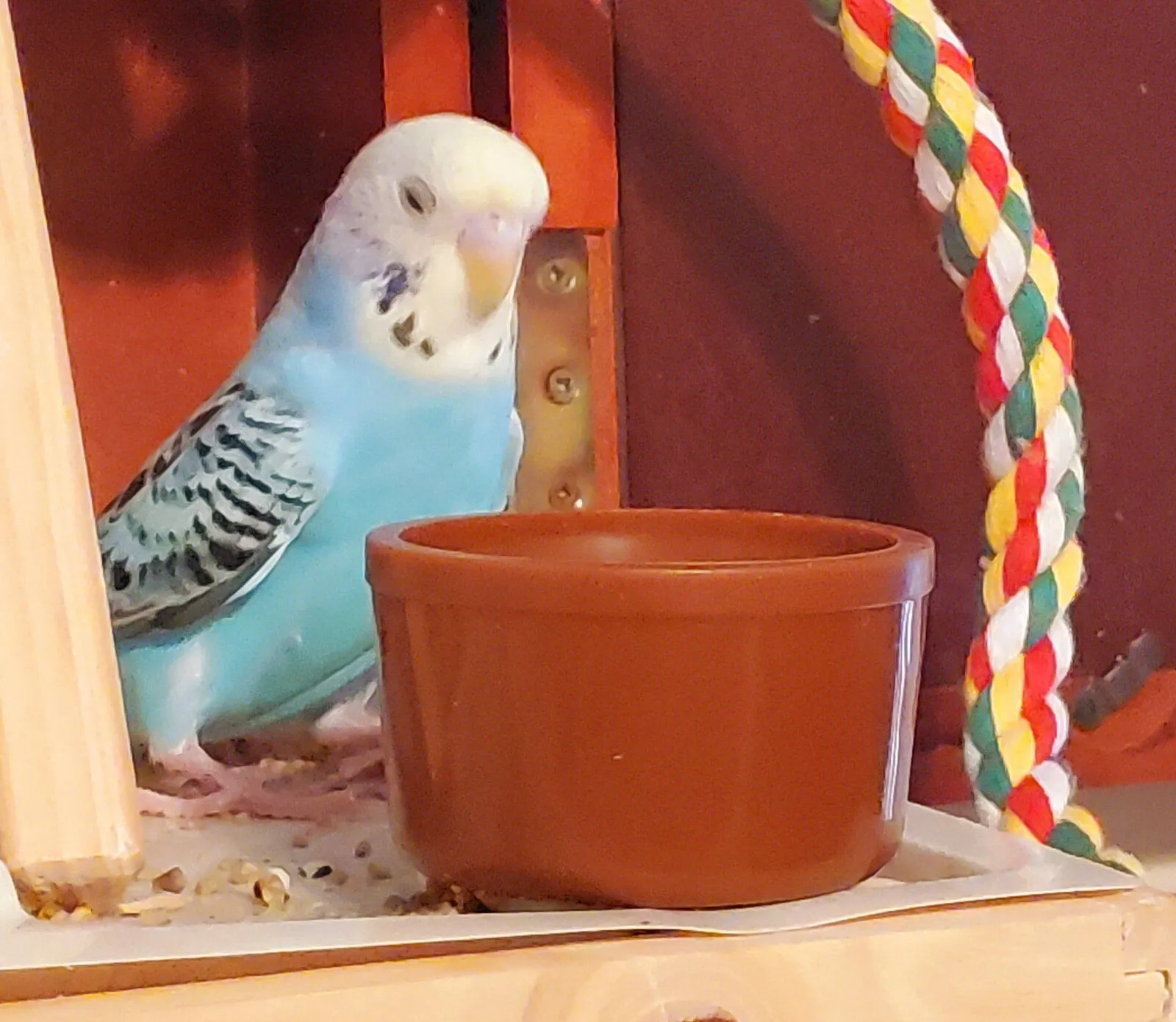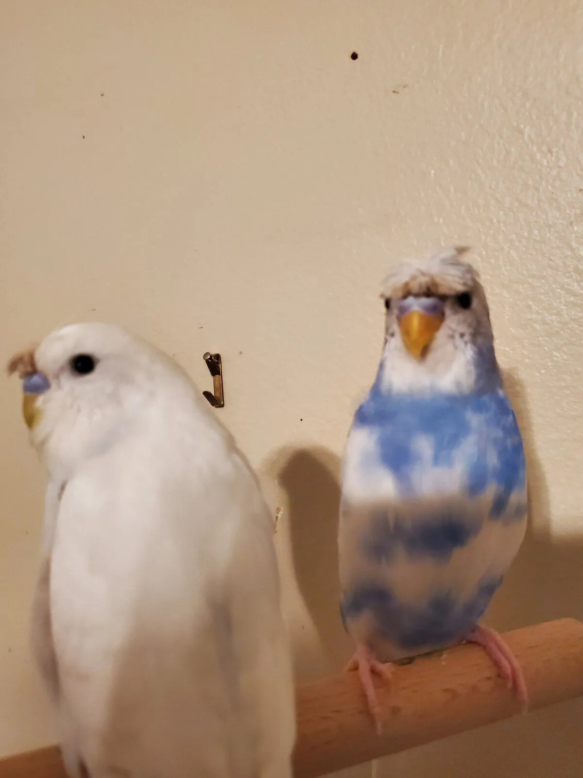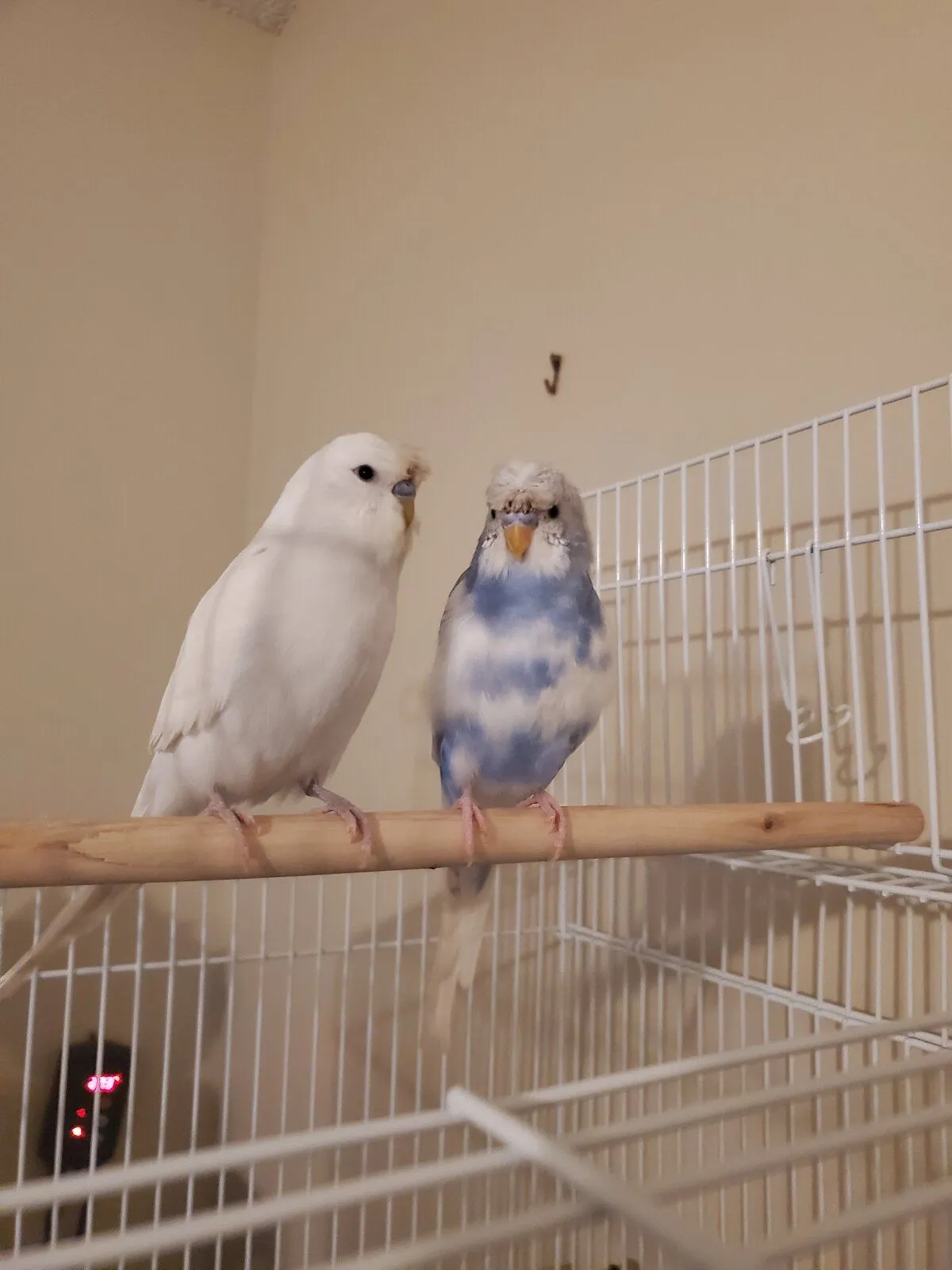 Here is some photos of my budgies playing in my room. I've been setting up a budgie room so they're playing with my stuff. These are not their cages, they're just used for playground purposes! Most of them came with the rehomed budgies.
