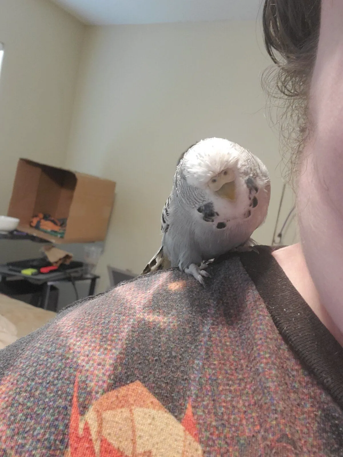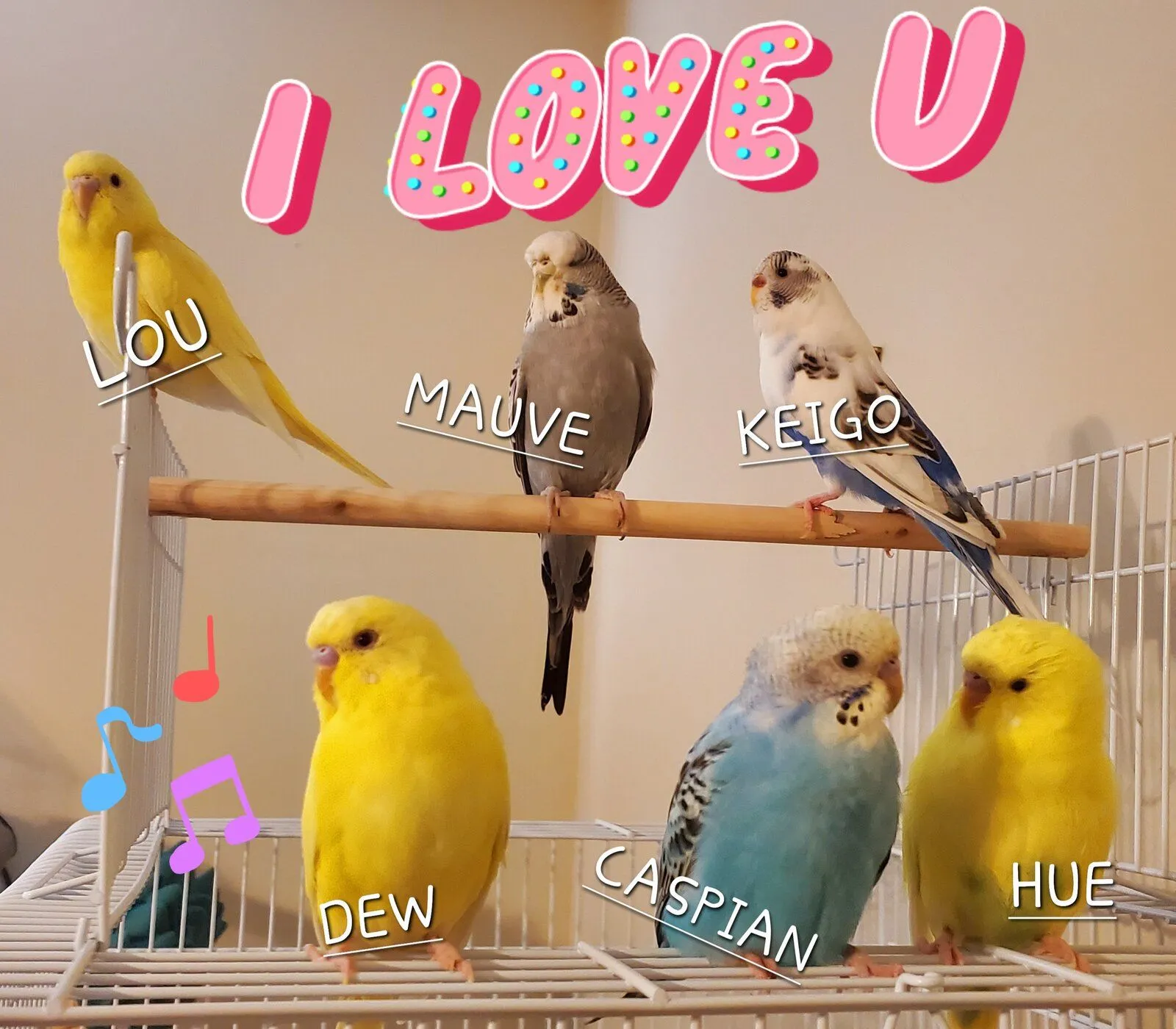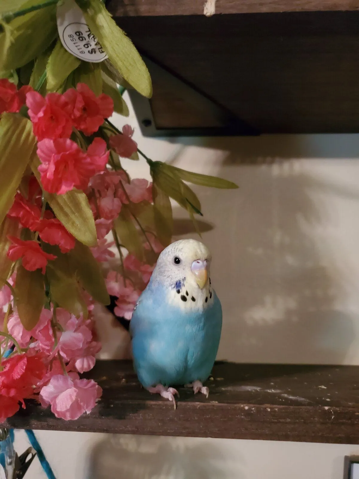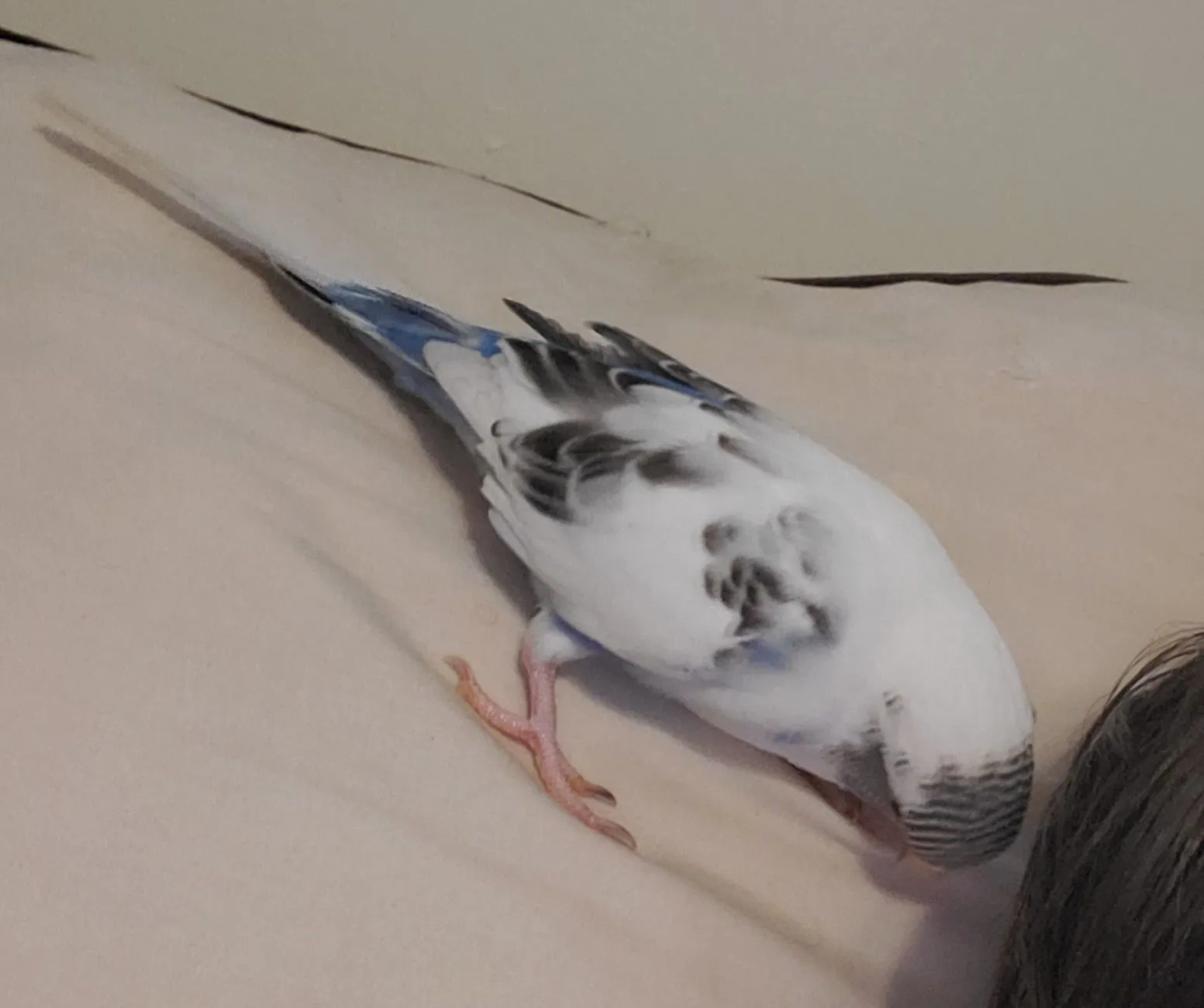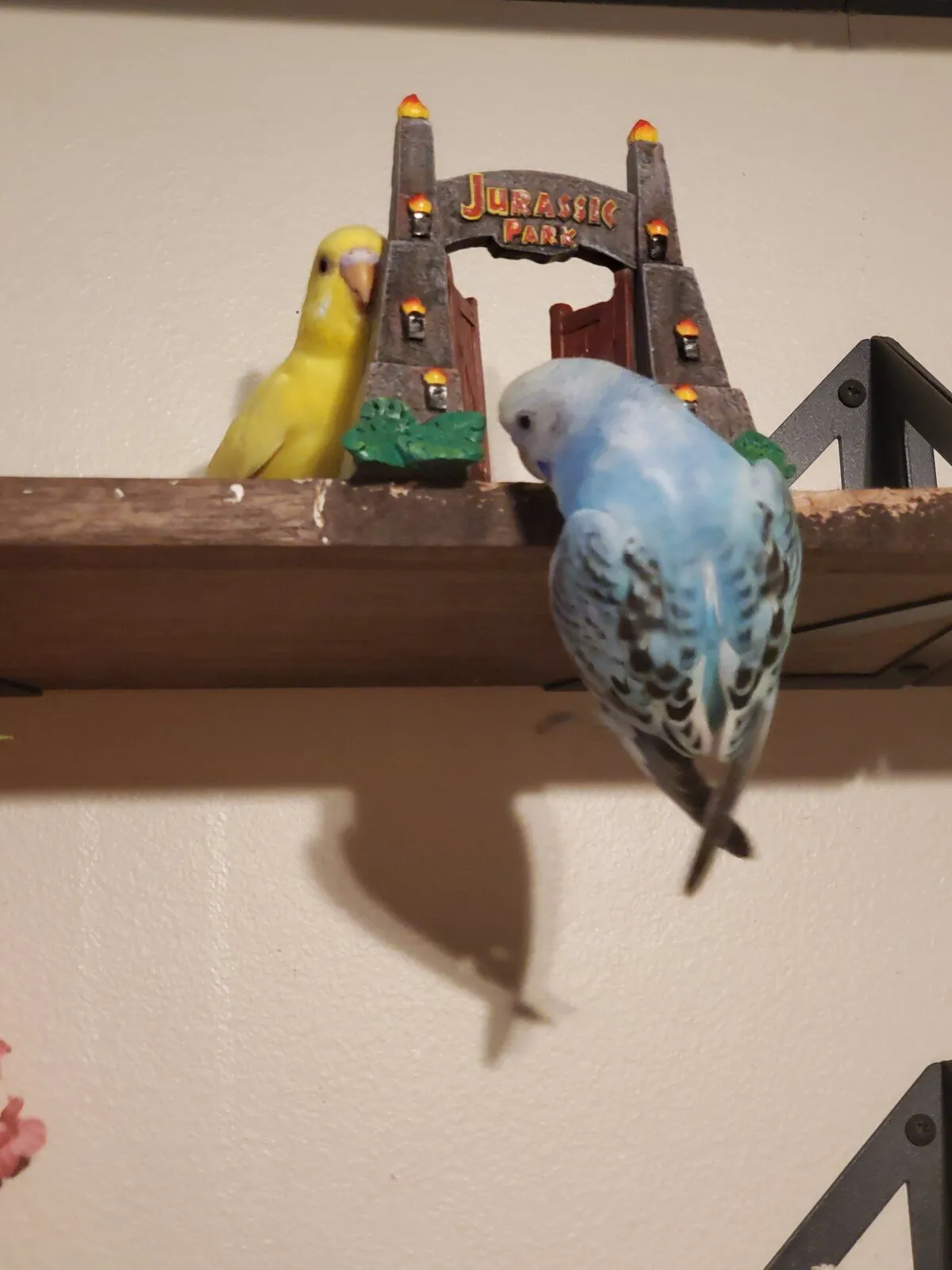 Here is some photos of my budgies playing in my room. I've been setting up a budgie room so they're playing with my stuff. These are not their cages, they're just used for playground purposes! Most of them came with the rehomed budgies.