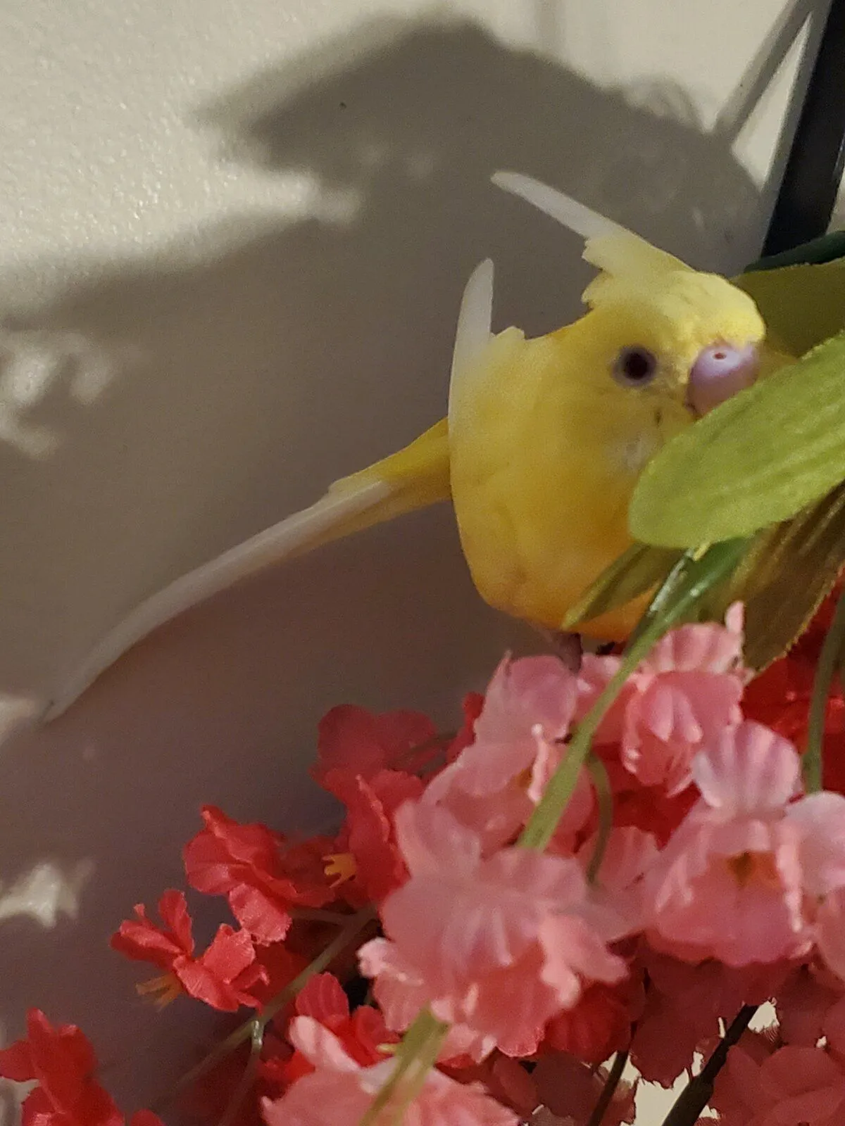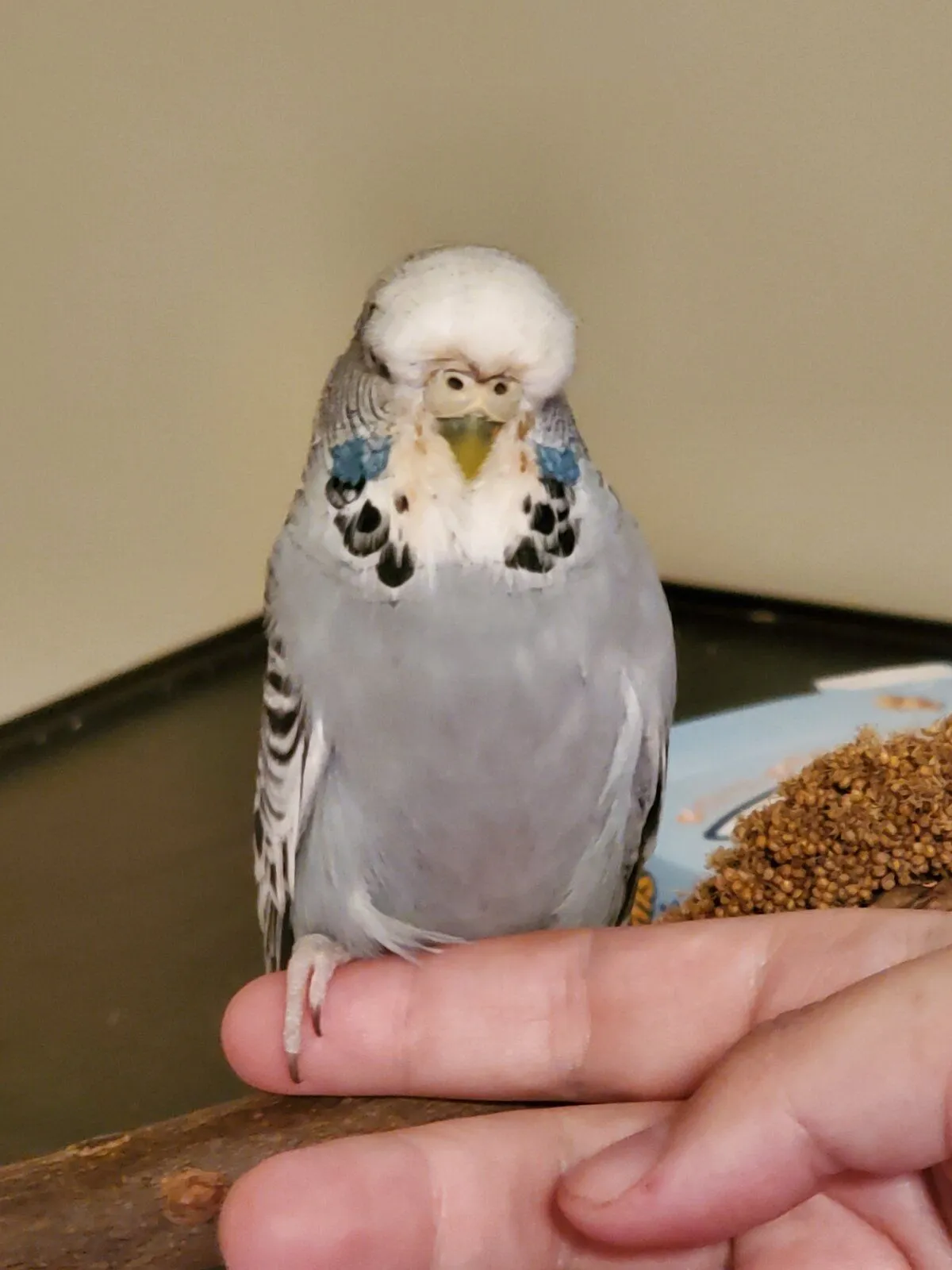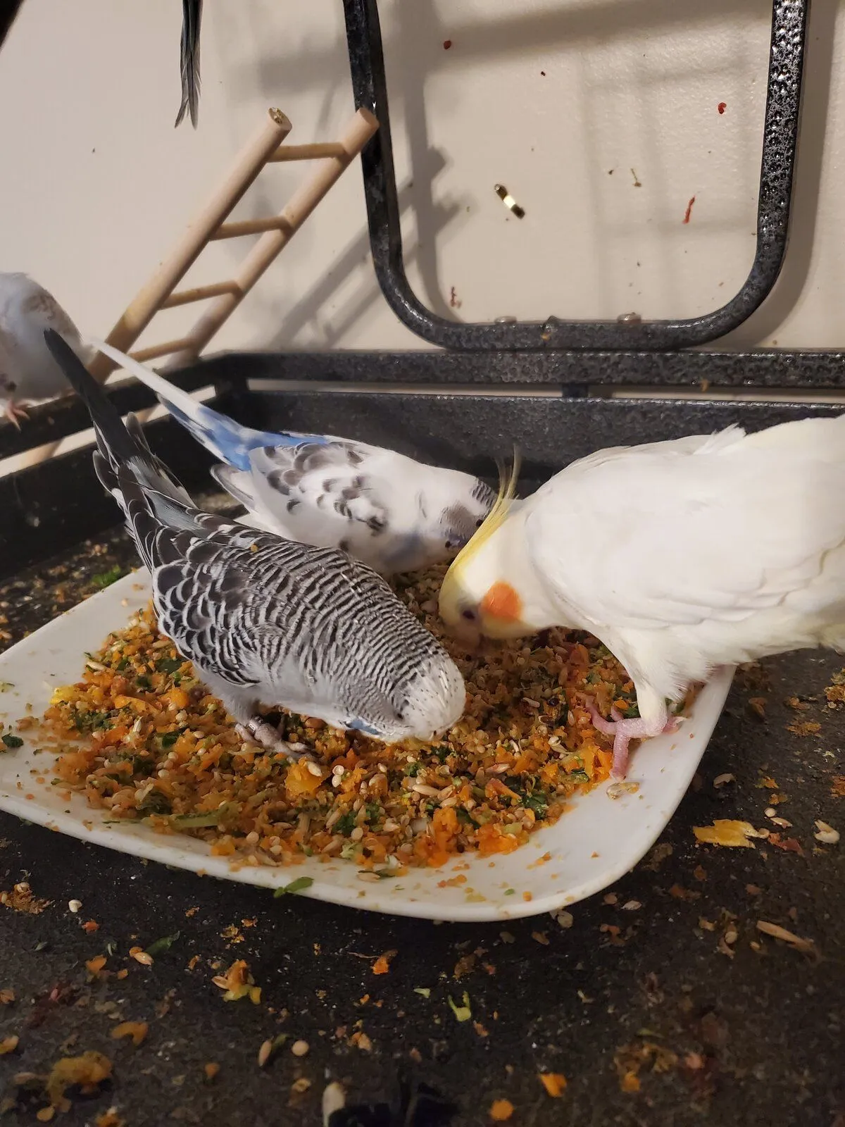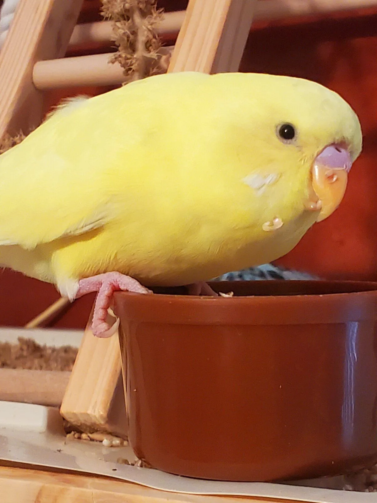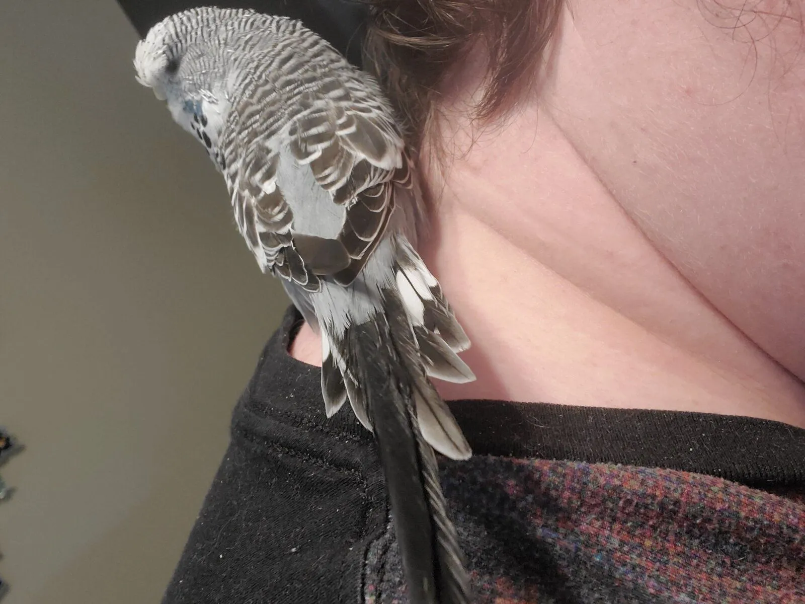 Here is some photos of my budgies playing in my room. I've been setting up a budgie room so they're playing with my stuff. These are not their cages, they're just used for playground purposes! Most of them came with the rehomed budgies.