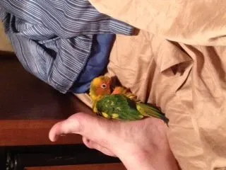 We took our sun conure camping with us and he loved it! He loved being outside with us most of the day and he was so much fun on the trip. I bought him a happy hut just before we left and he slept on top of it instead of inside it, lol