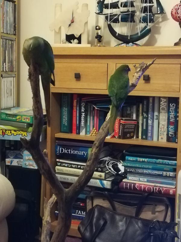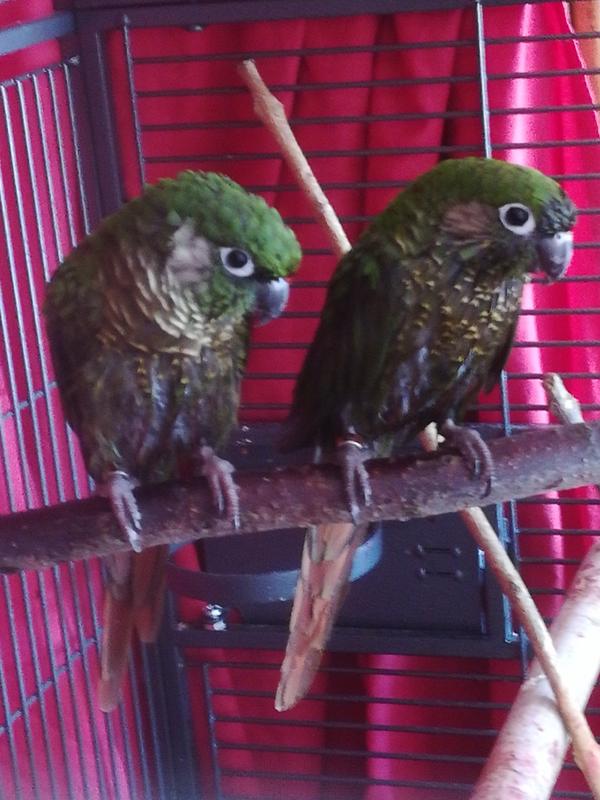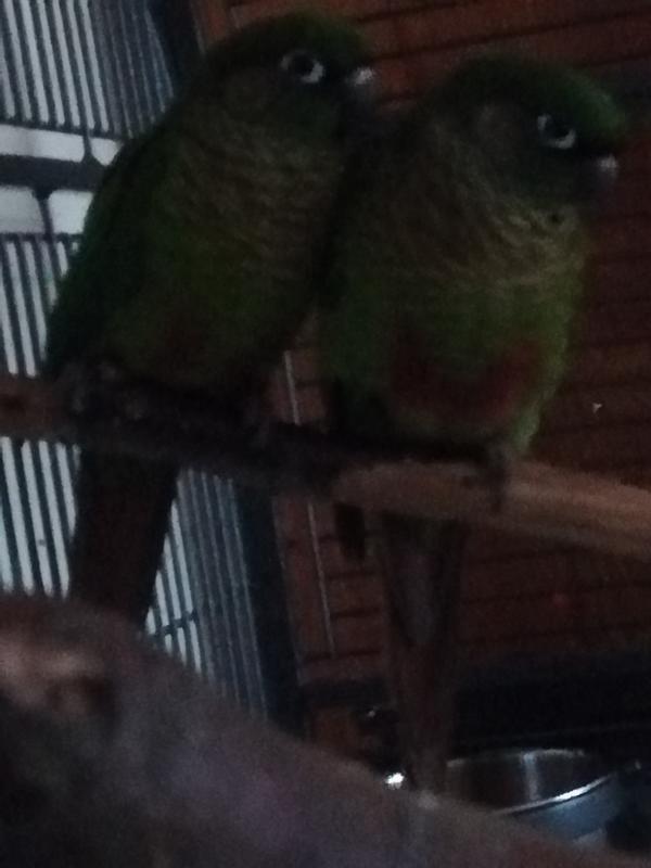 We have two male parent reared maroon bellied conures, we believe they are around 6 months old. We have had them for a month. We are slowly learning their likes and dislikes, and they are now coming towards us rather than away from us when we are near the cage.