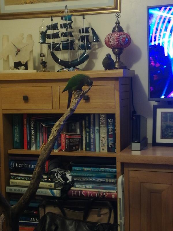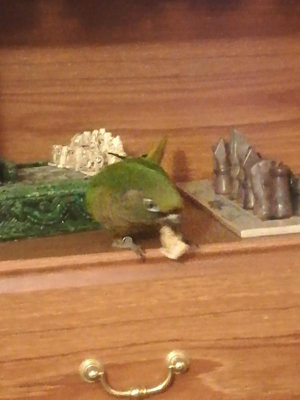 That said, I have got into the habit of standing with a finger poked just through the bars with peanut butter on the tip, and Pollux wants to come to investigate, he keeps coming forward and backing off.