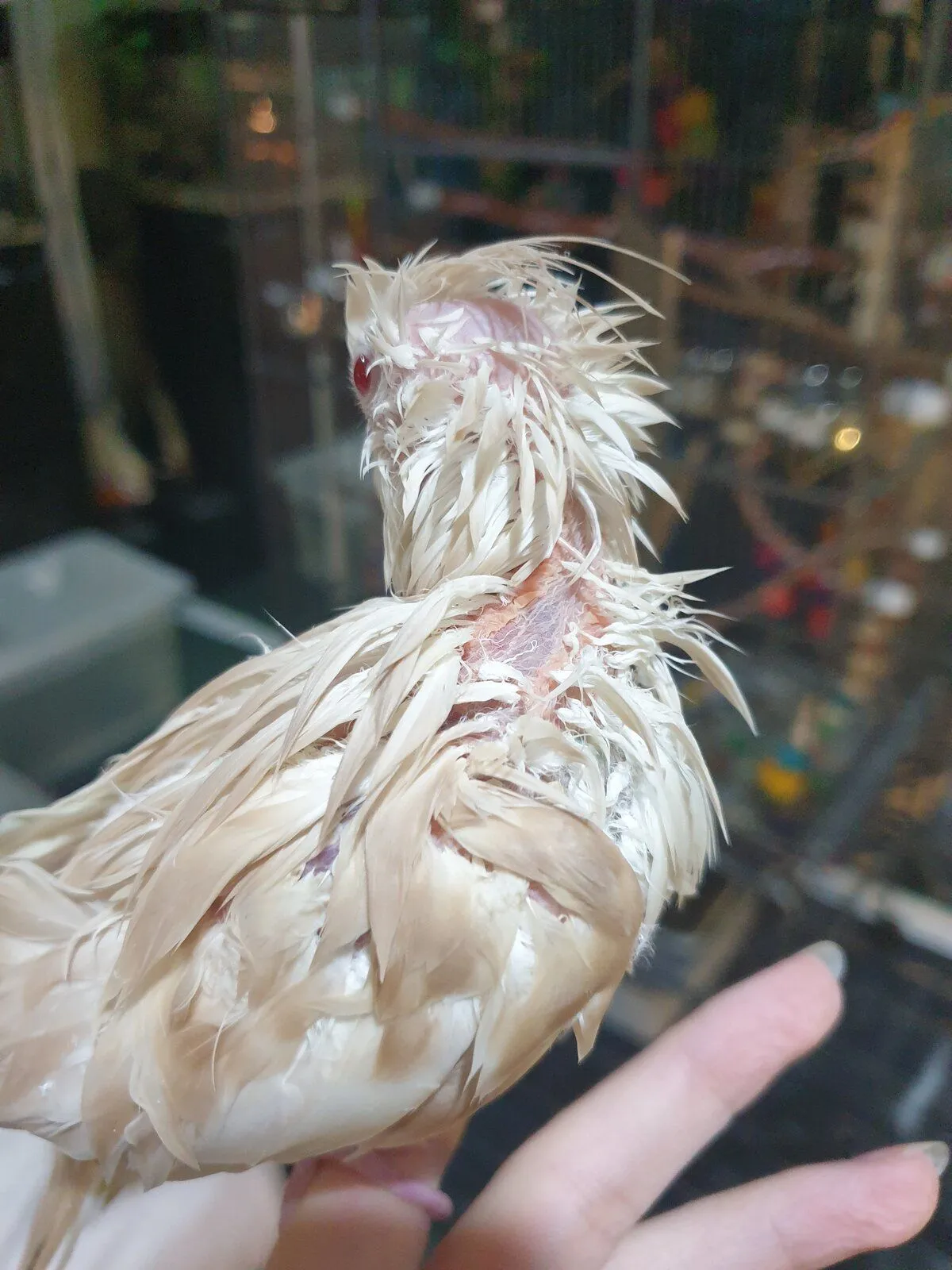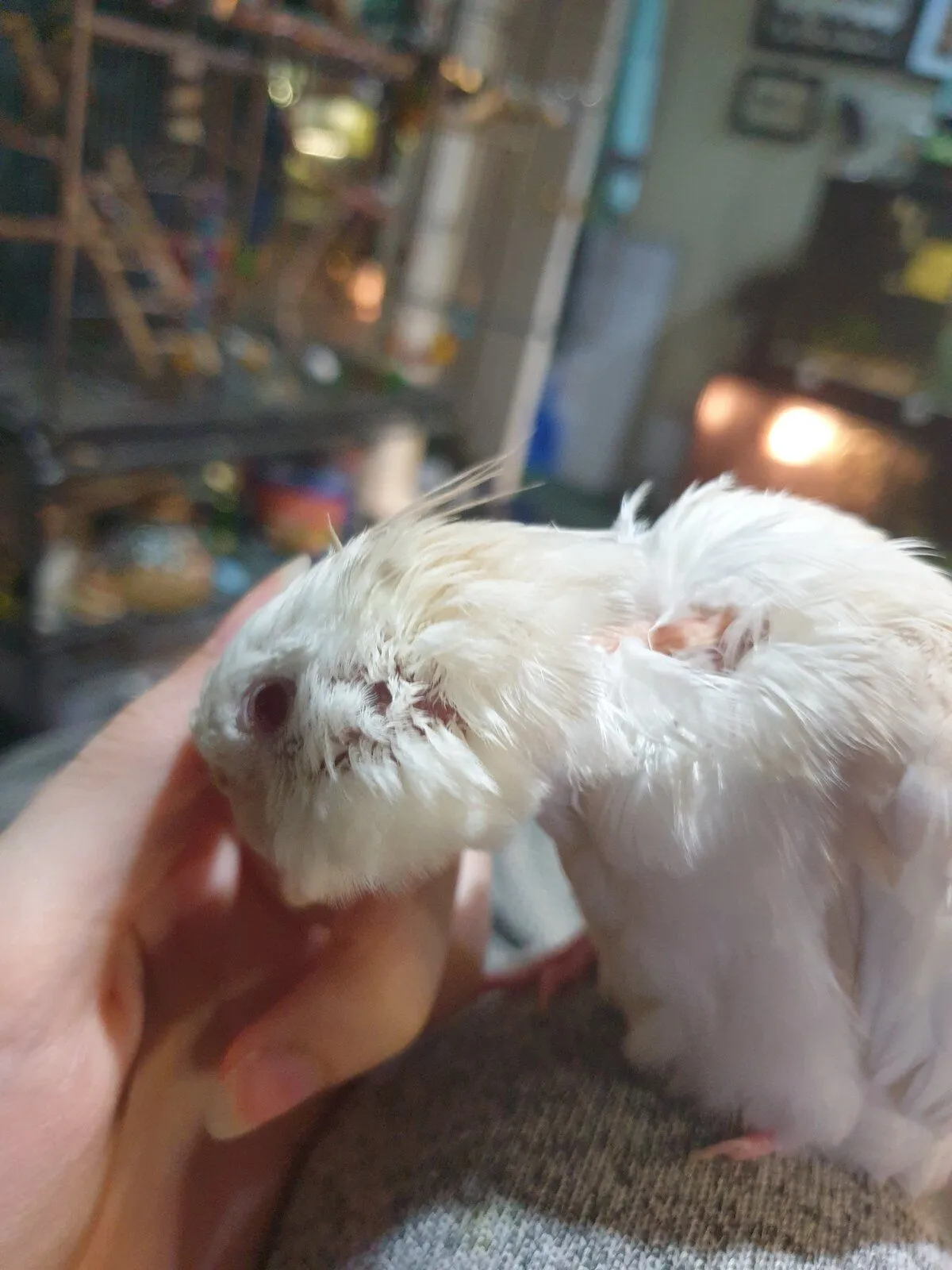 I'm new to the Forum, I hope I'm doing this right haha. I have a 7 month old whiteface fallow cockatiel named Halo, she is a great eater and is full of energy but from the day I got her I noticed her feathers were very sparse! She has a bald spot on her head which is common in some mutations but she also has baldness on her legs and her feathers overall are very sparse to the point where you can see her skin sometimes...... she was tested for beak and feather disease and thankfully came back negative but I don't know what would be causing this sparseness. She has been molding on and off for a few months but she hasn't dropped any feathers for a while now.