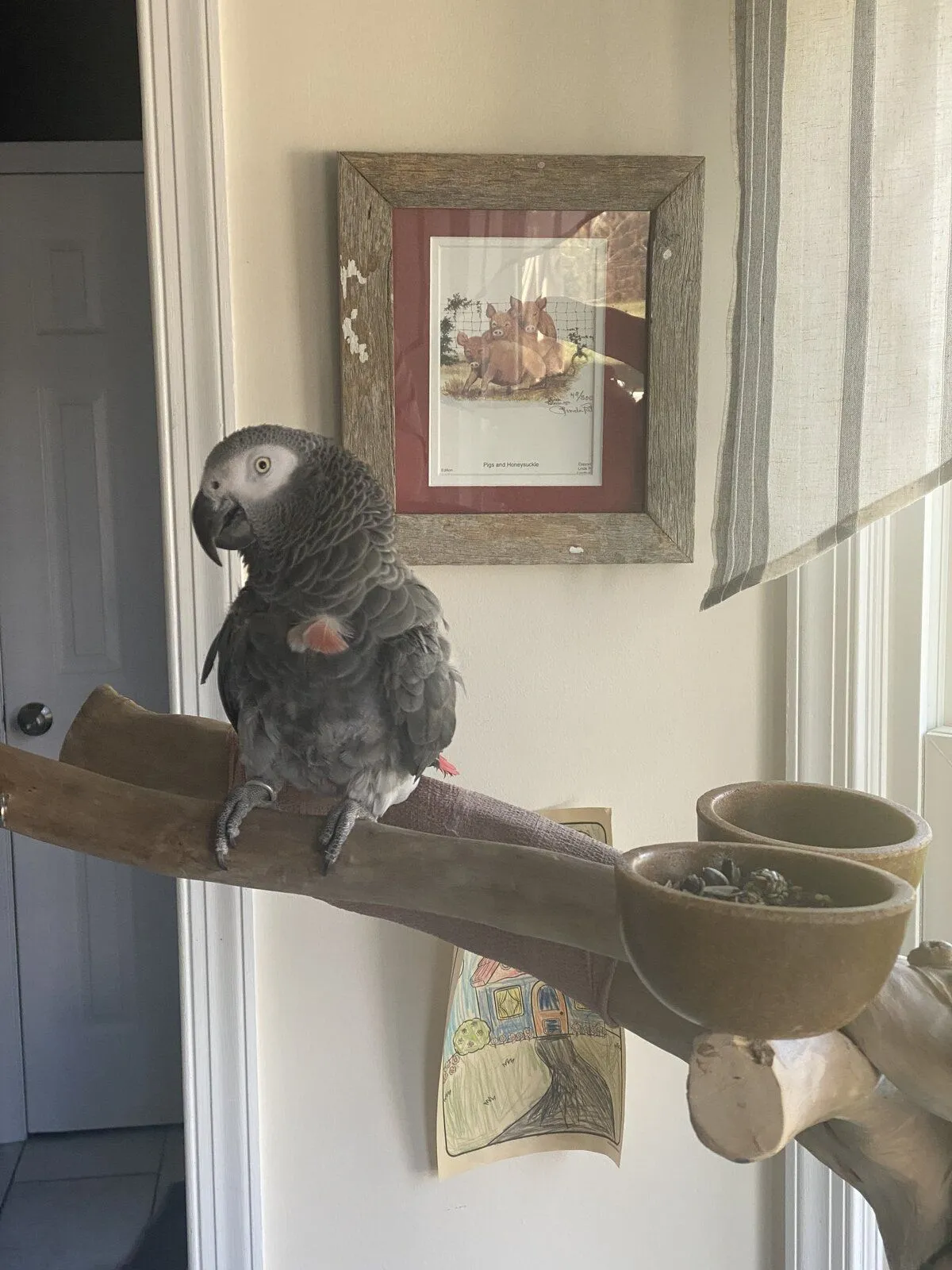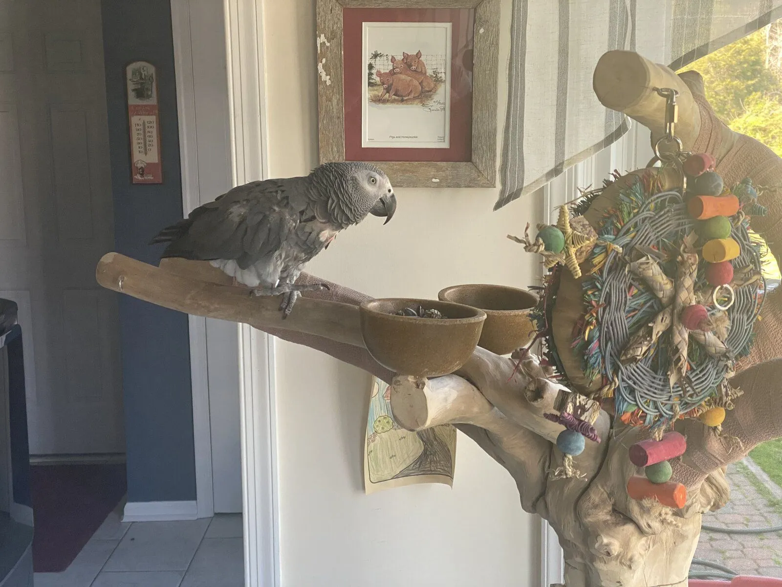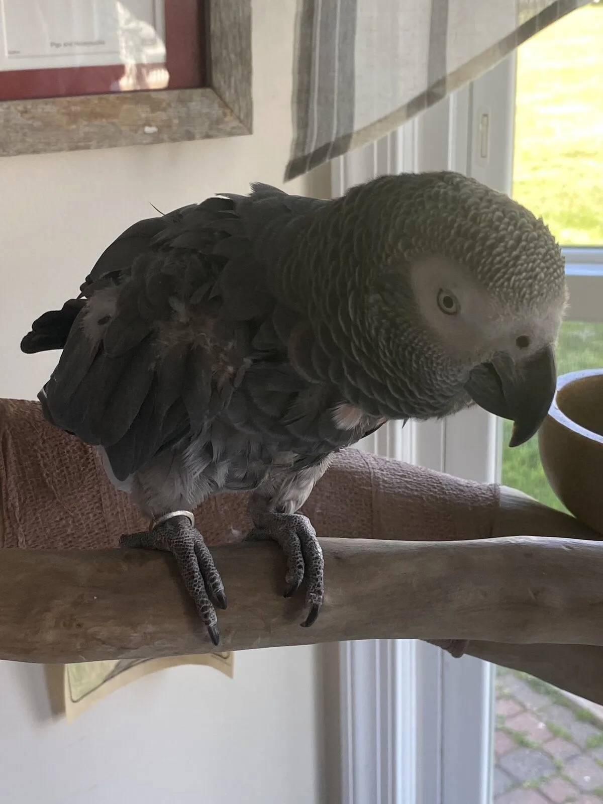 I inherited this grey (Bubba) about a year ago from my grandmother as she went into a home that would not allow for him. The bird has been with my grandmother for its entire life which is almost almost 30 years. I have had Bubba about a year and he has become friendly with everyone in the family. Bubba has been an intermittent plucker but has been doing better in my care and having things constantly available to pick at.
