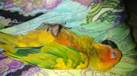 It didnt bother me, I would poke both of them and they would grunt at me... littl brats didnt even open their eyes.Oh my. I think I'd have a heart attack if I saw my bird laying on his back! Future bird.