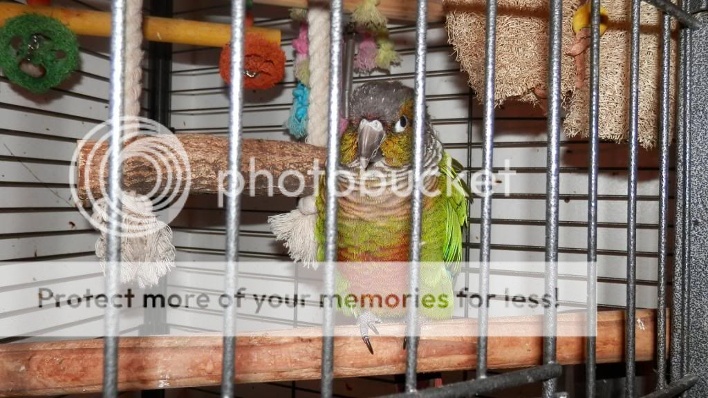 Cookie is a beautiful little bird. Is she a pineapple conure? I have a crimson bellied conure. He is a doll. Keep the pictures coming. Thanks.