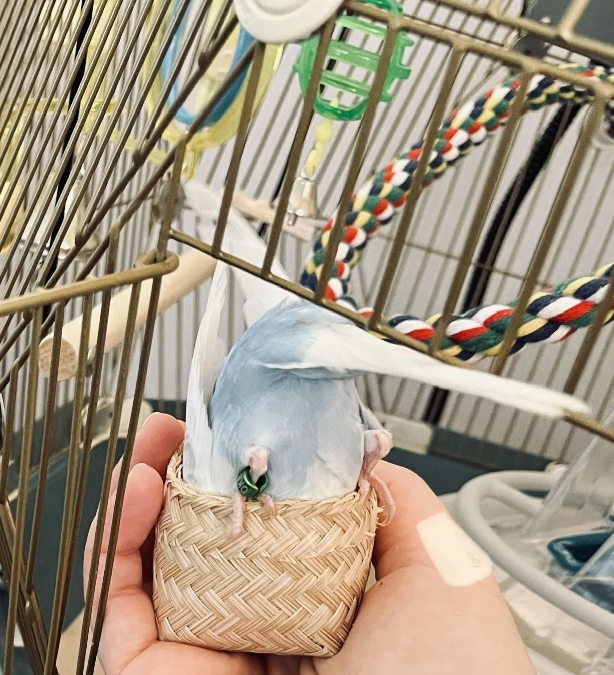 Despite going through her third molt this year (which has freaked me out - the vet said she is ok though even with her very prominent wing blood feathers that don’t look right to me but whatever mr. Vet - I’m keeping an eye on her like a hawk), Cozy is happy, energetic, and finally hand friendly! I was able to pet her for the first time a few weeks ago and now she comes for head rubs daily.