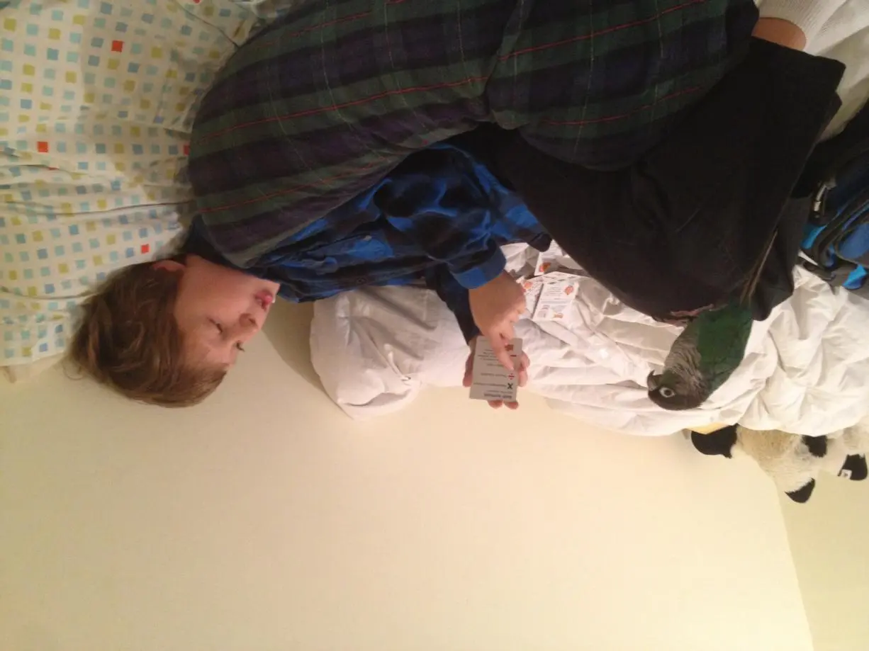 Cyrus is our first cuddle-bird. The budgies just do their happy dances, and the Amazon doesn't want to be touched. So here is my question, now that Henry and Cyrus wander around the house together, or do homework together: any advice on the poopy shirt thing? Other than I'm going to be doing a LOT more laundry now?