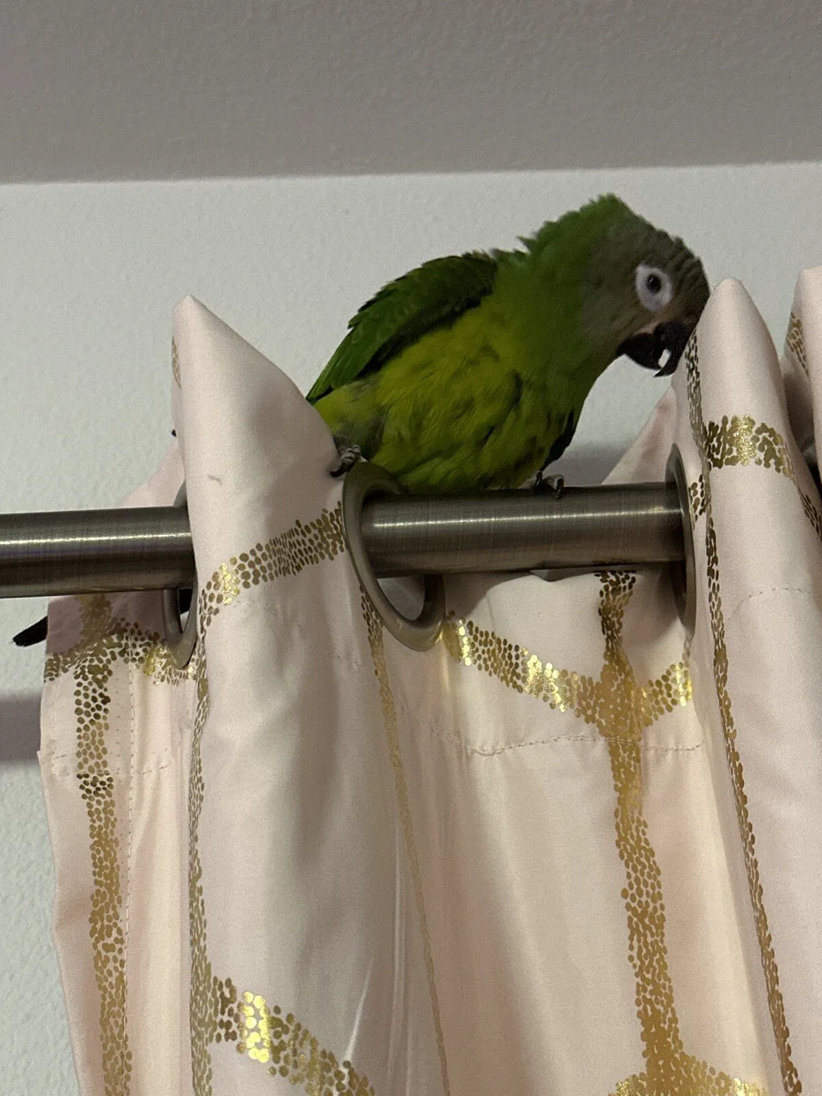Here we can see the wild Broccoli, refusing to go to bed and being a Big Bird on the curtains…probably pooping down them, in all honesty. When I don’t watch him he tries to chew them up. Never a dull moment.