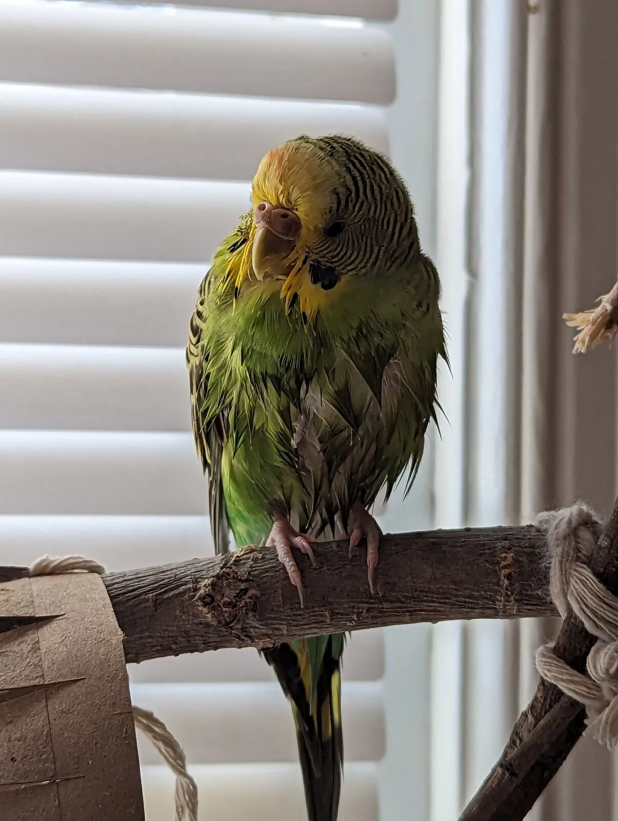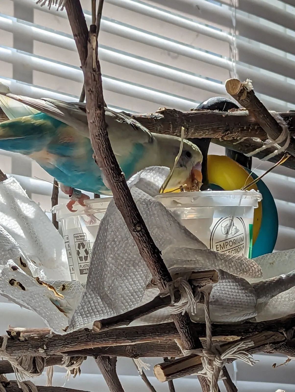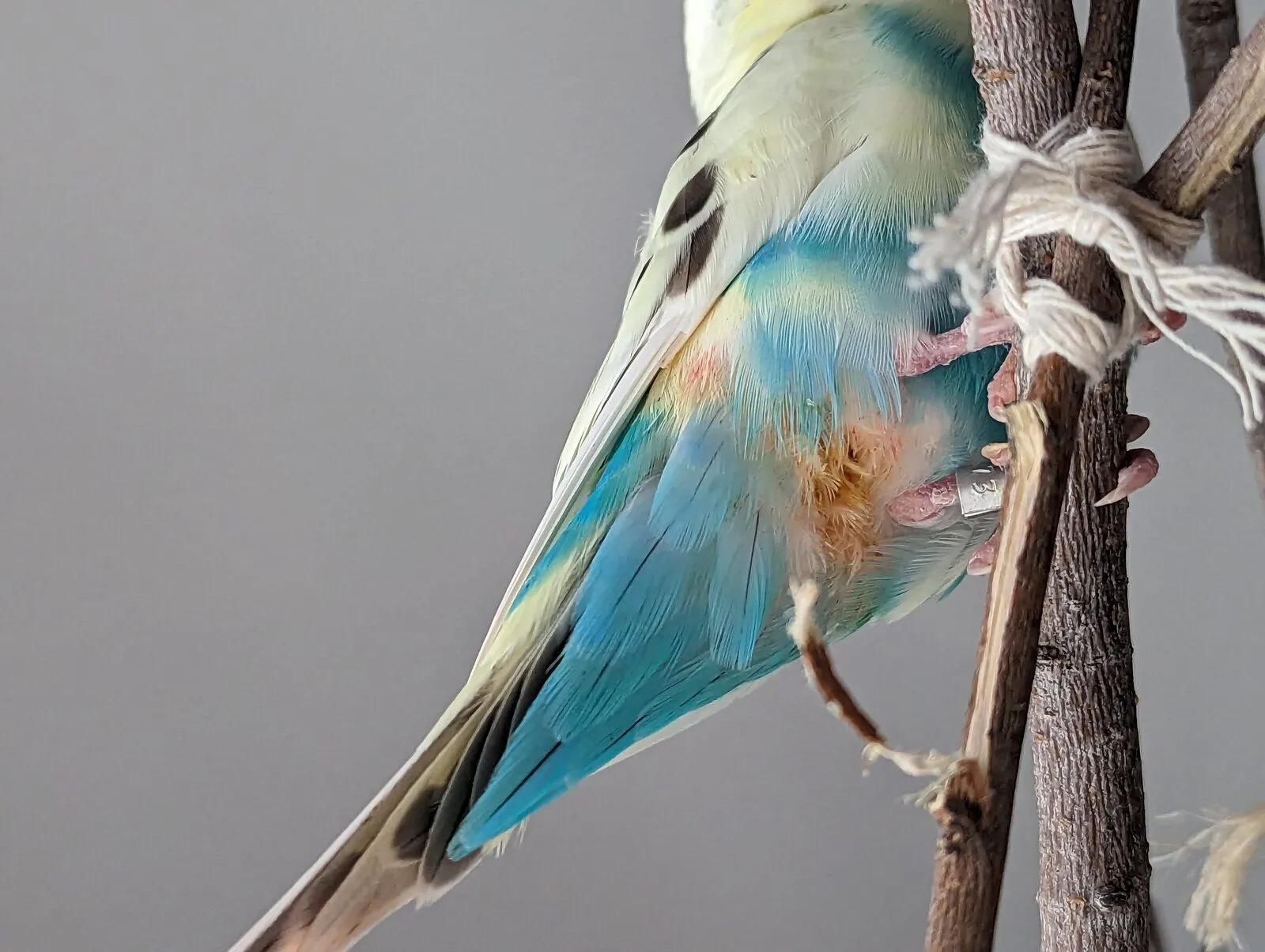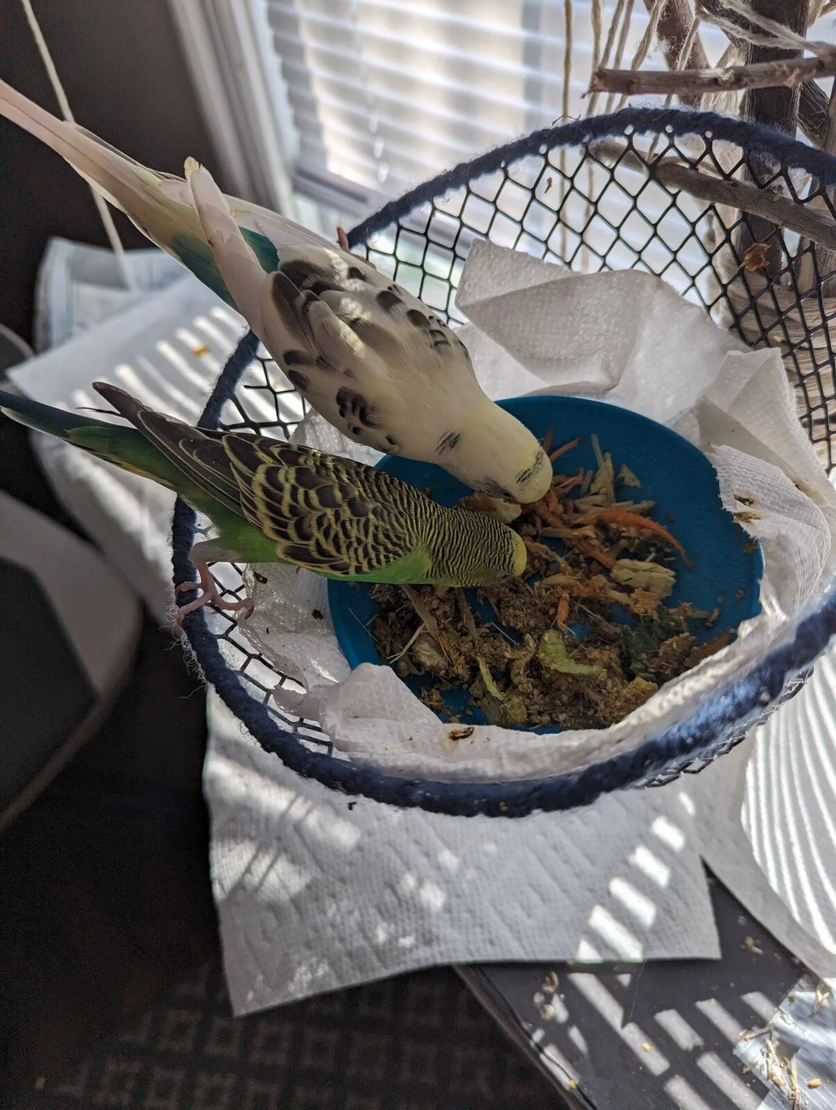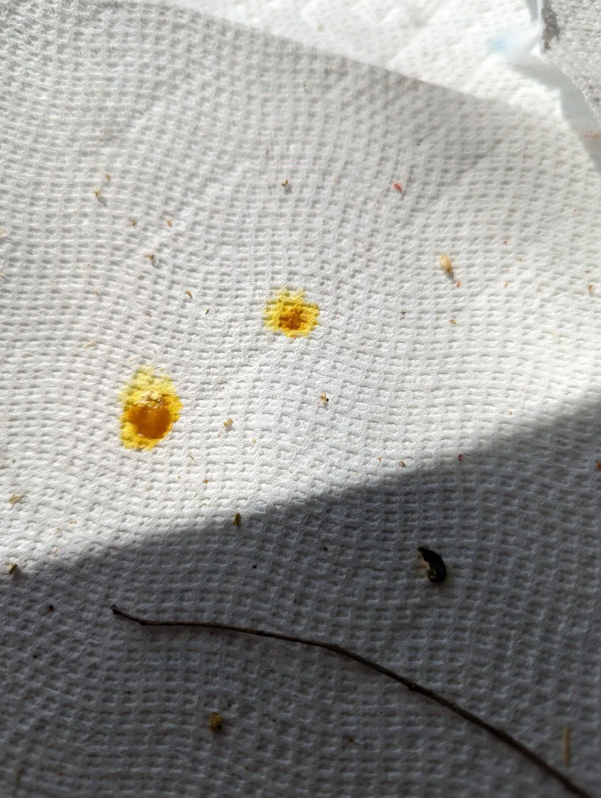 I was worried but figured maybe he just stained his beak and then feathers around his vent and tail... Nope I put fresh paper towels under their perch downstairs and his feces is BRIGHT ORANGEY YELLOW and watery.