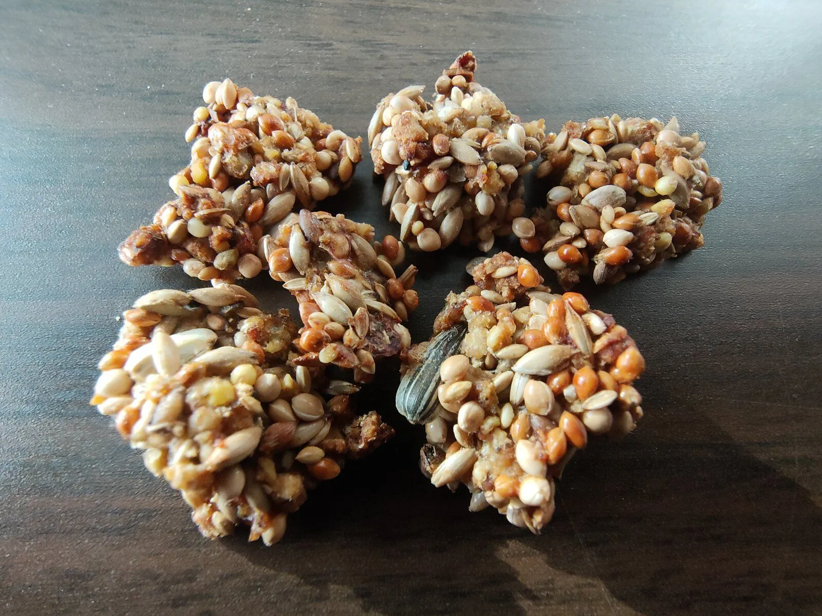 I tried once or twice making my own Nutriberries, or at least something similar, and best thing is that it's all natural inside, and there's no added sugar to it. I couldn't find what is the binding agent for Nutriberry, I guessed some syrup of a sort, and many people suggested mashed fruit for homemade birdie treats.