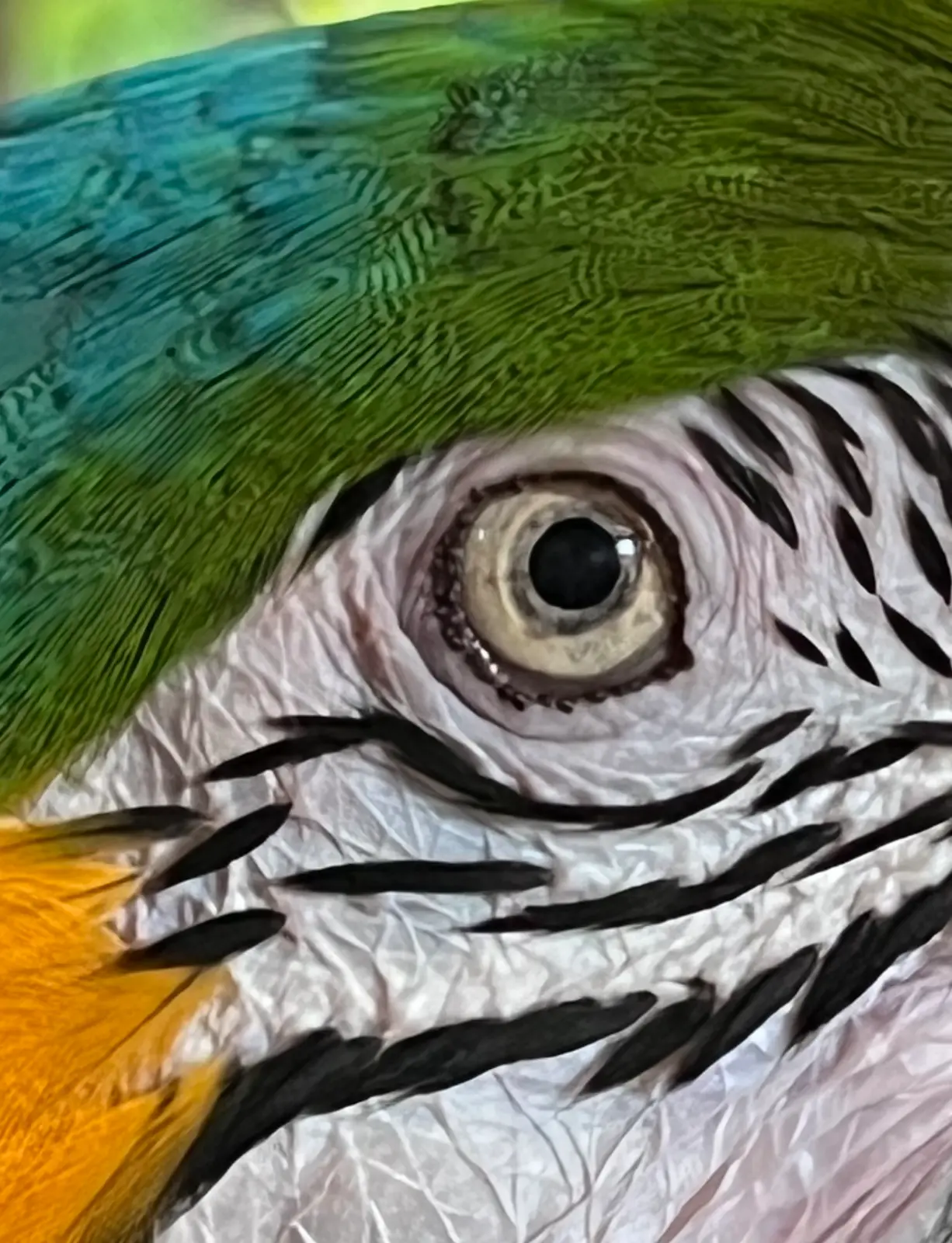 I saw a post on Instagram earlier about a parrot with eyelashes. One of my birds doesn’t have them, but the other does. Button (peach-faced lovebird) does not, but Ava (Amazon) has very cute little eyelashes. I am curious now…do your parrots have eyelashes?