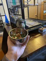 Today is Elvira's first day in her new home with me. She already has a mind of her own and lets you know she doesn't want something (not by pinching tho). I'm already surprised by how different she is from my previous Green Cheek in becoming acclimated so quickly to a very new environment. She's already learned to drink from the water bottle (have cup on cage full of water) and is already eating entire (long) meals out of my hand, outside of the cage.