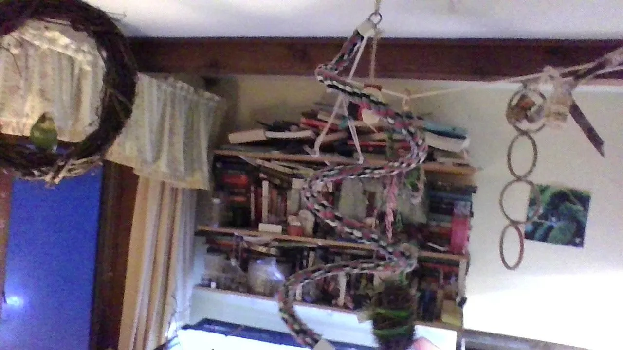I wanna get a pic of Pepper in his tent so bad! Don't worry, it's not one of those loose fabric soft tents, it's just a cardboard tent lined with VERY thin cloth, only for padding, and my burds love to cuddle in it because it gets COLD here. They don't chew it, and it's super open, so Picasso doesn't get hormonal over it. I made a very careful selection, and the cloth is only about half a cm thick. Here is the tent (its open on the other side as well), plus a pic I forgot to upload of the new room!