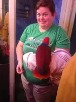 Oh, yeah, and there's a little "old school" bird trainer's trick that isn't obvious from the pictures. It's a loose fitting long sleeved shirt. But under those sleeves on both forearms is a towel, wrapped in an ace bandage... That bird could have bitten my forearm all day, and it wouldn't have mattered...